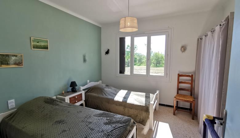 Aquesta casa independent, en planta baixa amb aparcament privat i jardí no tancat, comprèn: una cuina equipada, un gran saló i menjador, una habitació (1 llit de 2 persones de 140 cm), una habitació (2 llit individuals de 90 cm), bany i vàter separat.