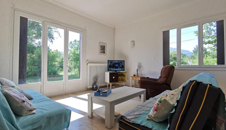Una carretera estreta i asfaltada us portarà a aquesta casa tranquil·la, amb un gran jardí i una bonica vista al Canigó.