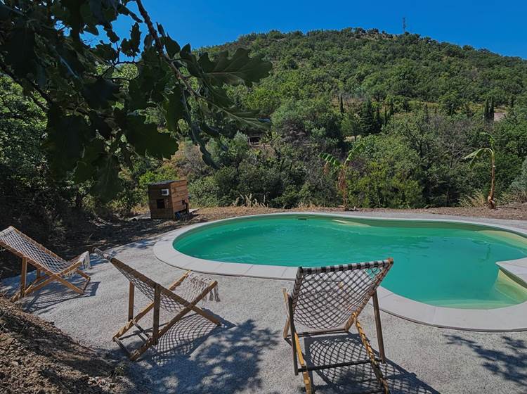 Càmping format per parcel·les i dos mobil-homes de lloguer, molt ben ombrejat, al cor de la natura, just al costat del poble de Caramany (150 habitants) i a prop del llac situat a la part baixa del poble.