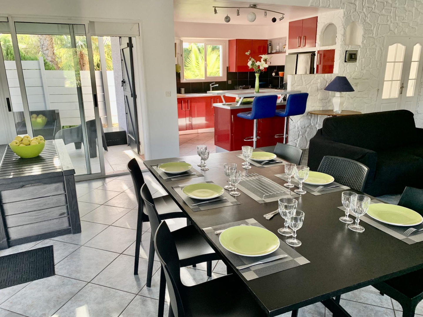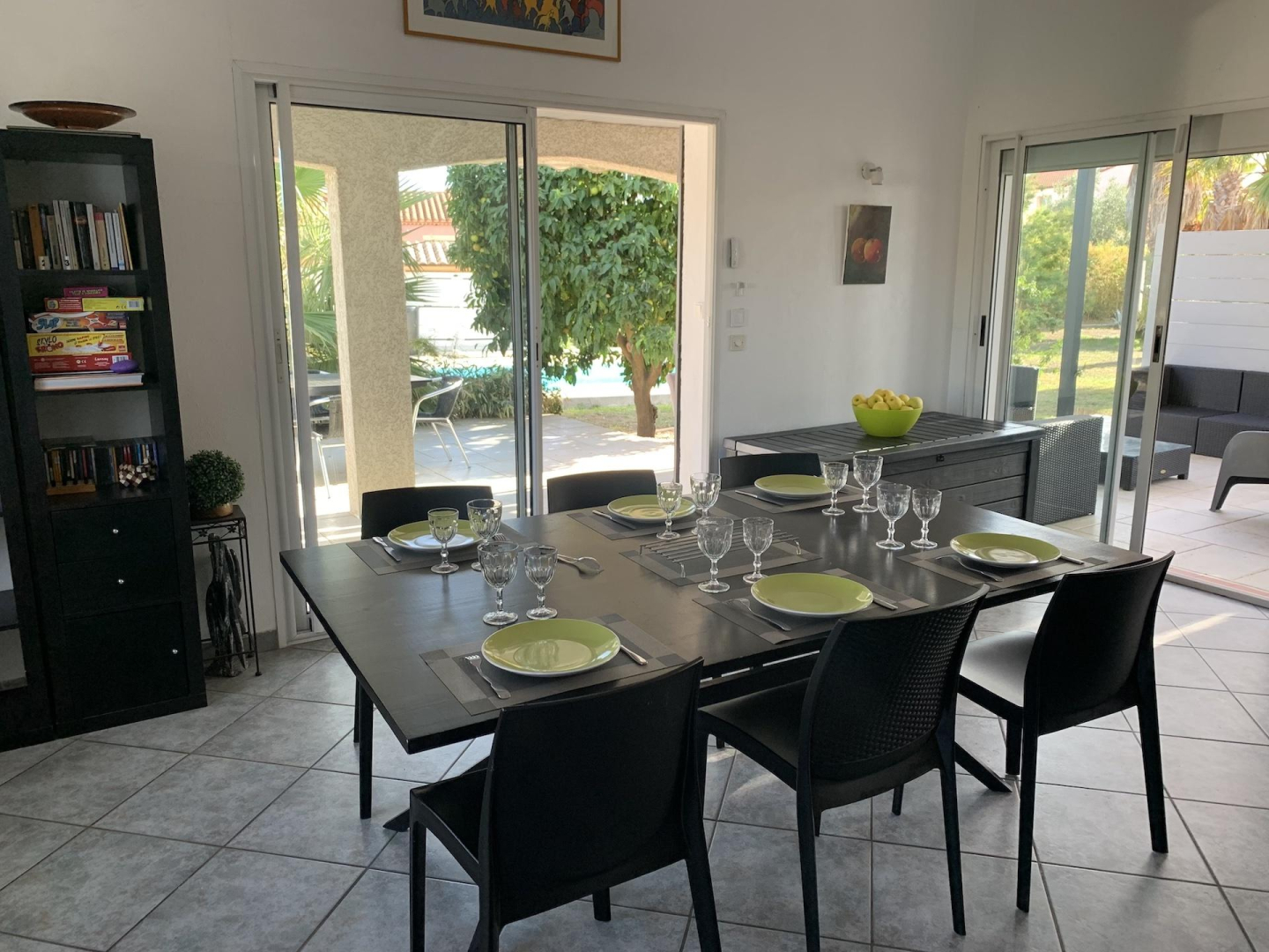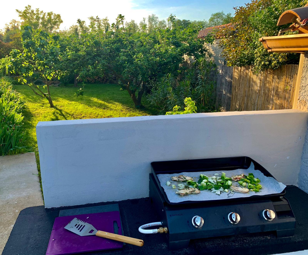 El seu jardí ombrejat totalment tancat de 1200 m², amb terrasses, gran pergol, saló de jardí, barbacoa, planxa, taules, cadires i banys de sol, per a 8 persones, us espera!
