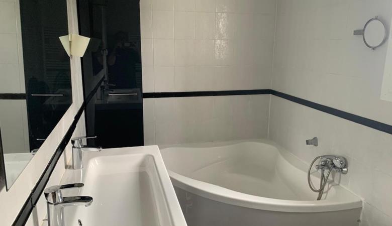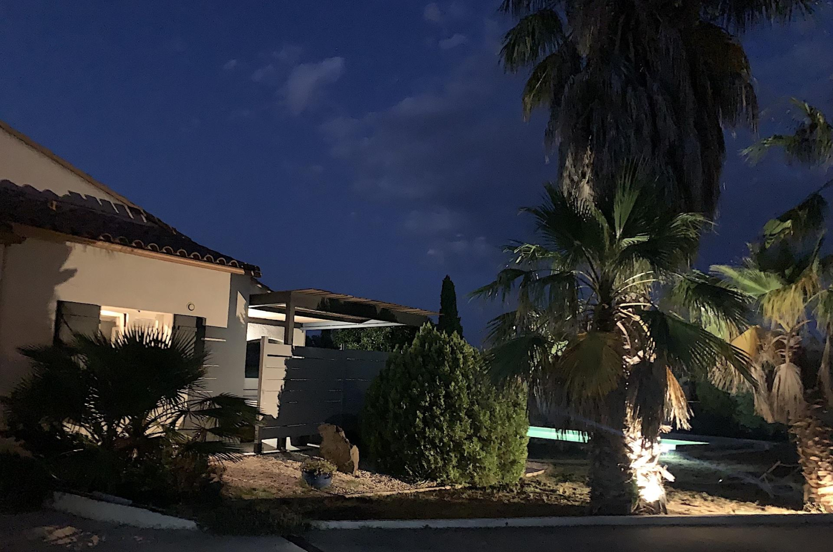 La piscina (9,40 x 3,90 m), protegida per un volant elèctric. Disposa d'un sistema de tractament amb sal i una bomba de calor, el que la fa accessible del 15/05 al 15/10.