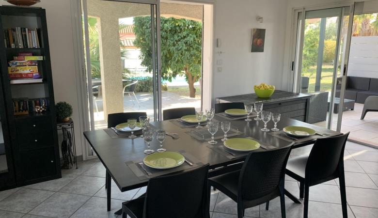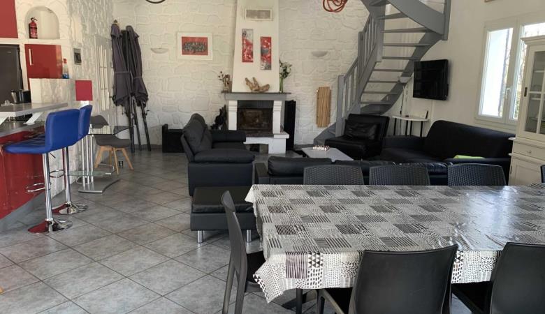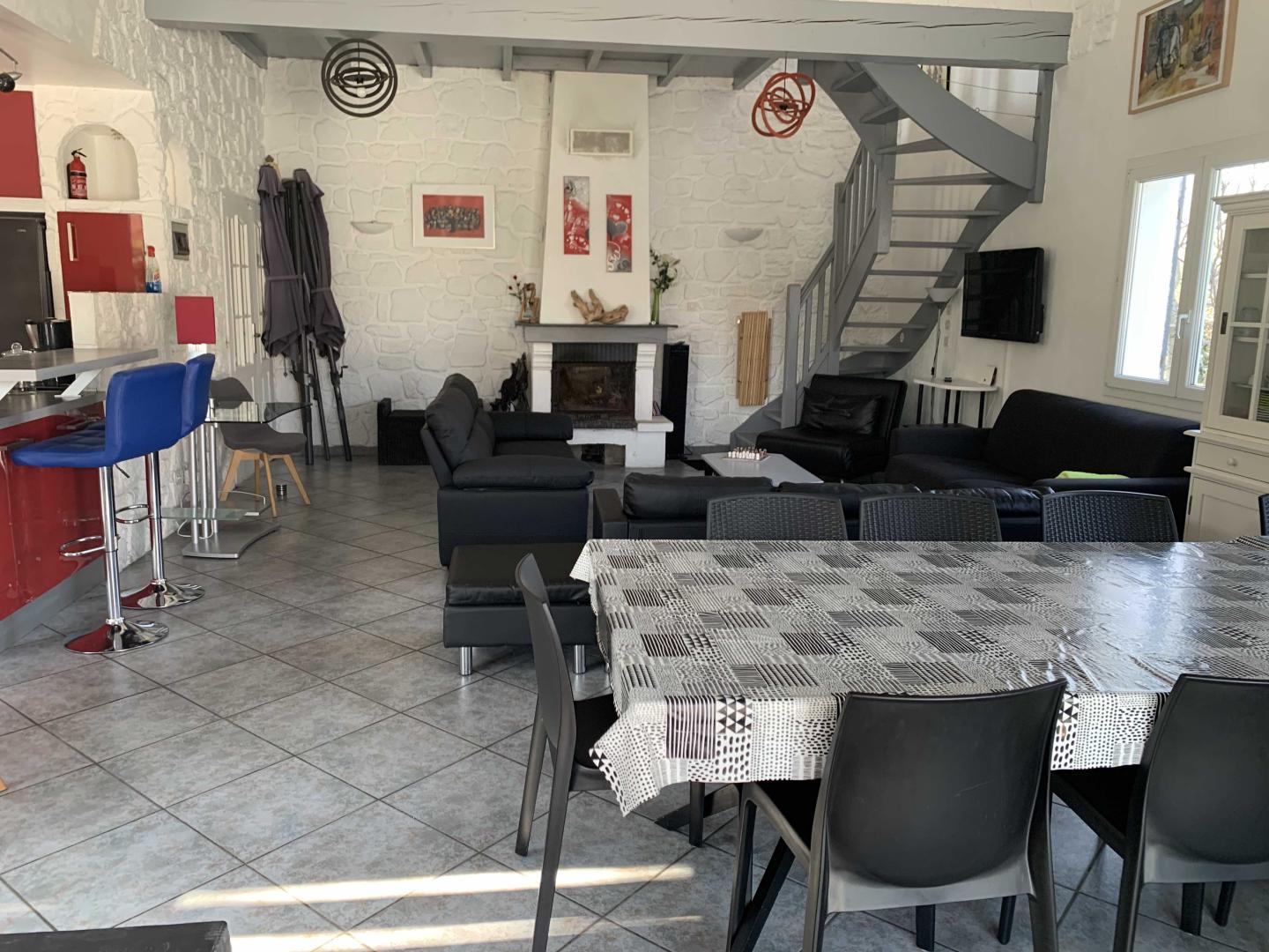 Aquesta bonica vila inclou una cuina oberta, una gran sala d'estar, amb una xemeneia i una meitat. Quatre habitacions: una de 17 metres quadrats (llit de 160x200), una altra habitació (1 llit de 2 pers. amb 1 llit de 1 pers. superposat) i una altra habitació (1 llit de 160x200), bany (banyera i dutxa), i un ase indèpen.+ una safareig amb rentadora i un gran congelador. I una habitació (1 llit de 160 x 200) amb el seu bany privat, annex (dues d'aigua i vàter), a l'annex que dona a la piscina.