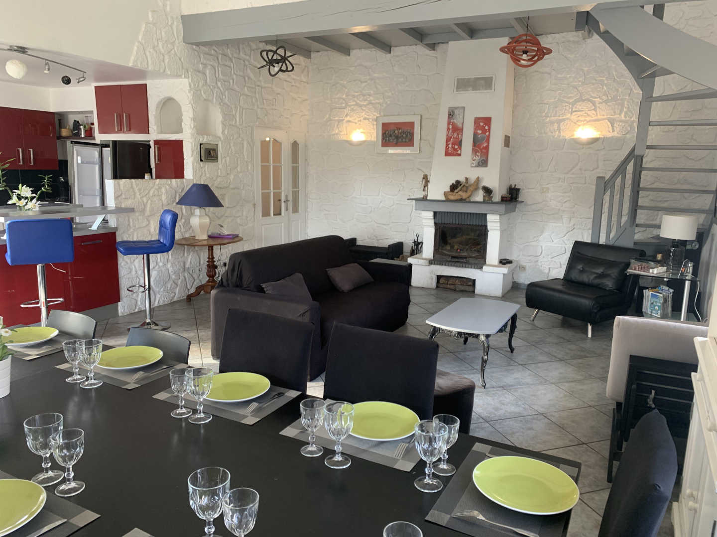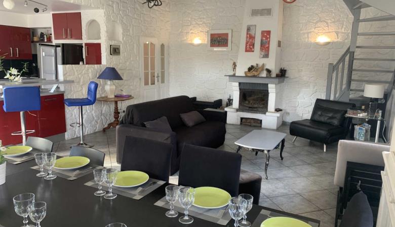 La bonica vila comprèn una cuina oberta, una gran sala d'estar, amb una xemeneia i una meitat.