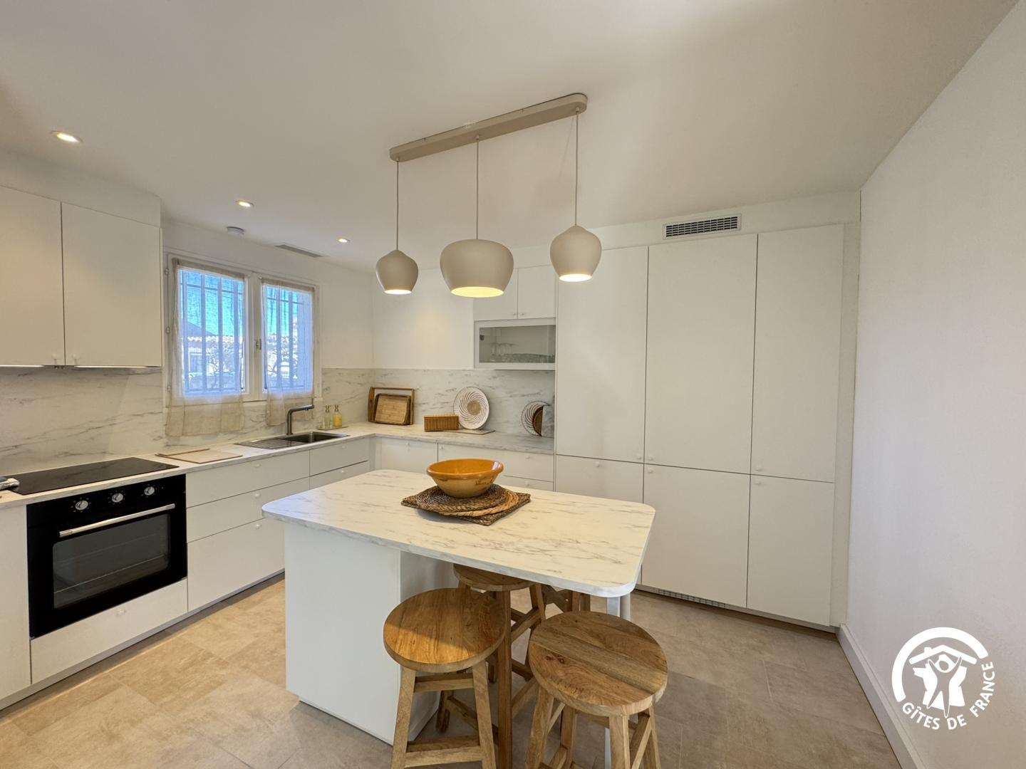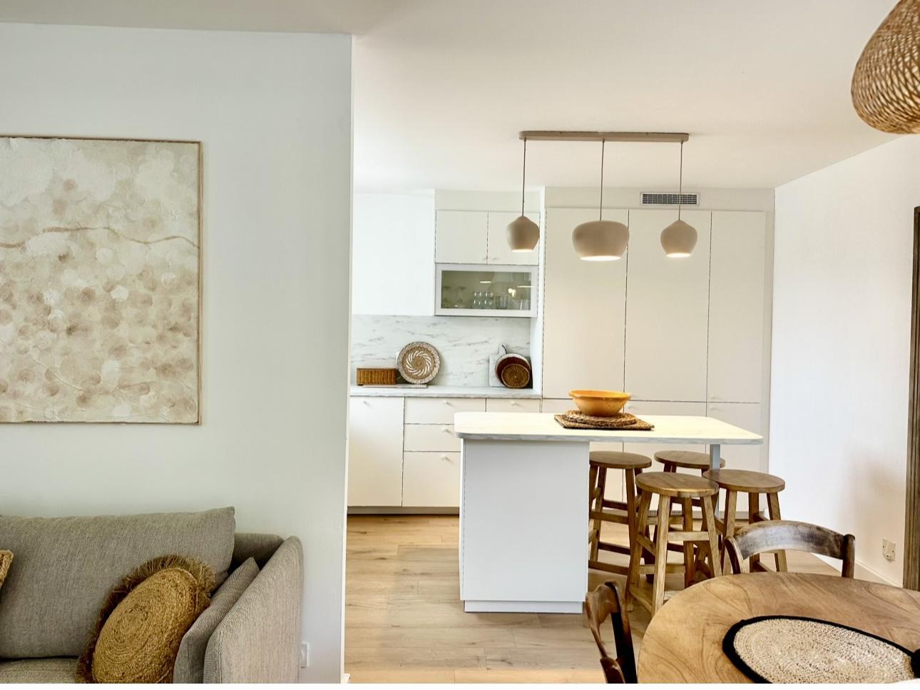 - Cuina oberta totalment equipada: plaques d'inducció de 4 focs, microones, rentadora, cafèeres Nespresso i de pistó.