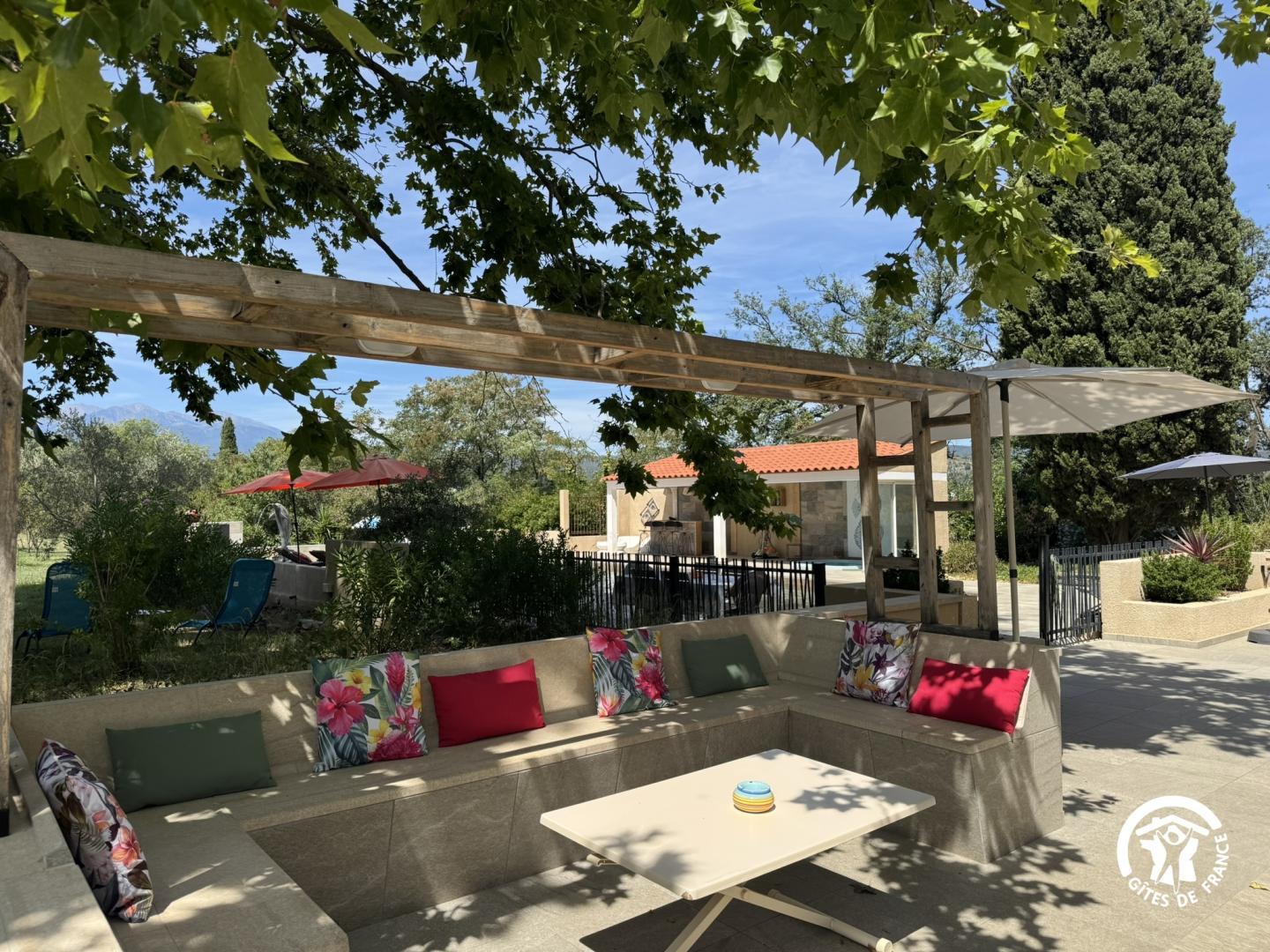 El domini Bellevue, situat al bonic poble de Céret, famós per la seva atmosfera artística i els seus cirerers, ofereix un entorn ideal per a una estada única. L'indret és perfecte per descobrir els tresors del departament: la perla de la Costa Vermella, Collioure, i les platges d'Argelers. Preneu els camins de senderisme, els rius i les cascades del Vallespir. Els dissabtes al matí, al centre de la ciutat, passeja pels carrers pintoresc i les galeries d'art, gaudeix dels deliciosos productes locals i de les terrasses solejades. Després de les vostres dies descobrint les Pirineus Orientals, relaxeu-vos al spa per a 6 persones amb calefacció a 35°C de 10h a 21h, amb una vista excepcional sobre les muntanyes veïnes i la piscina no escalfada (14 x 7 i de 0,95 a 1,45 m de fondària) protegida per un portal corrector i un volant, així com la terrassa, us conviden a relaxar-vos i gaudir de moments de complicitat en família o entre amics.