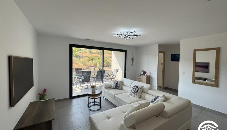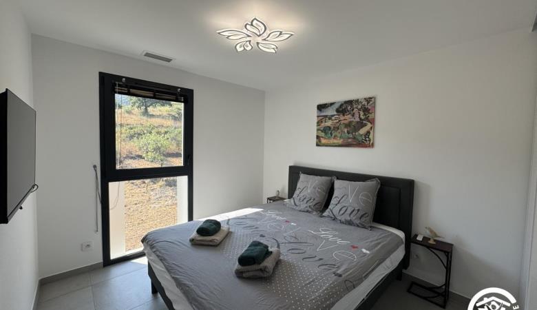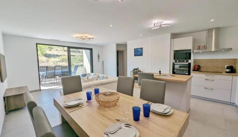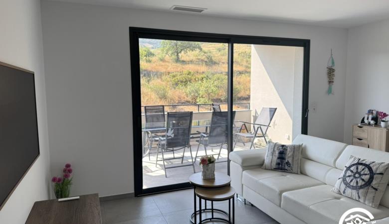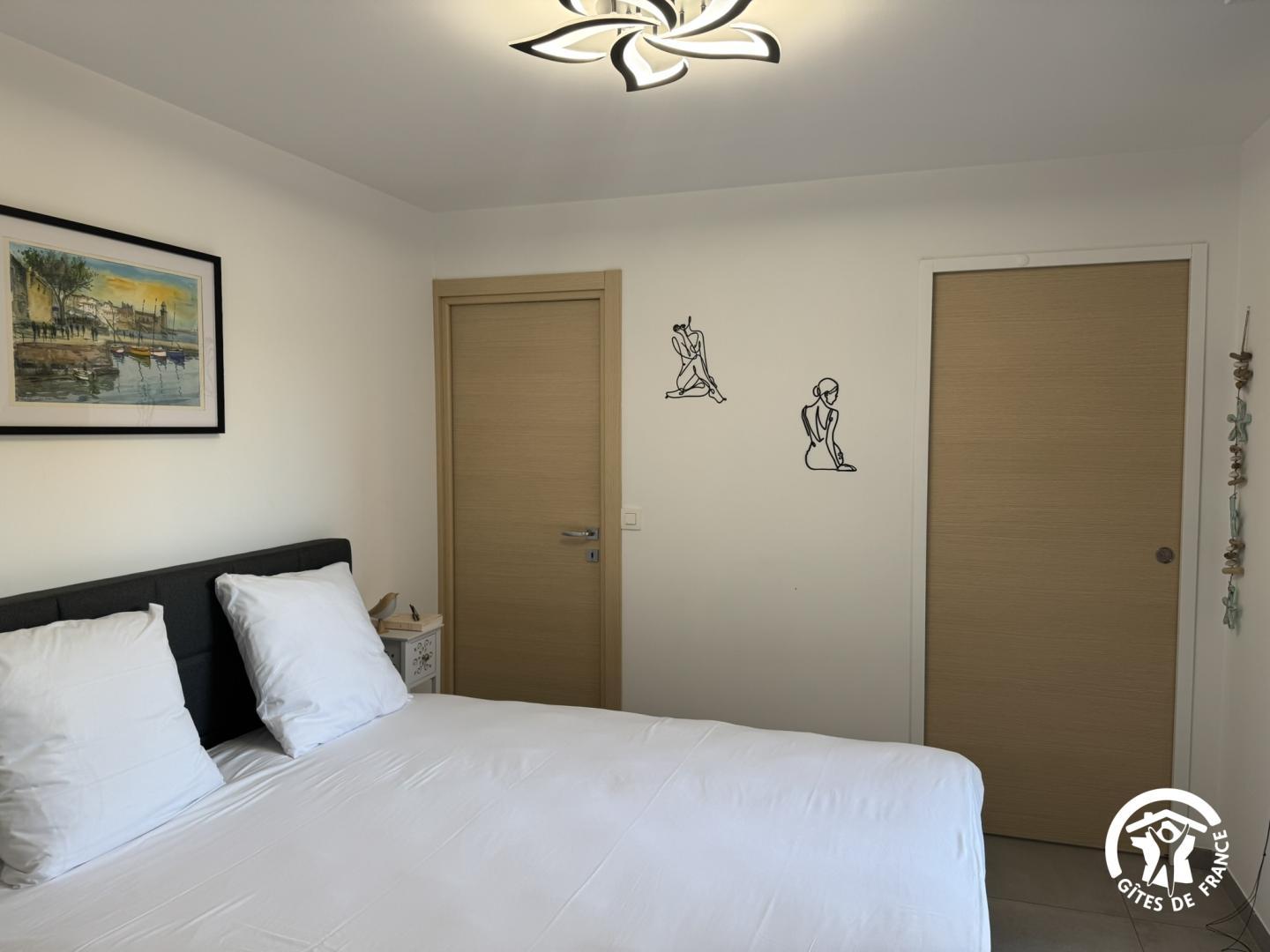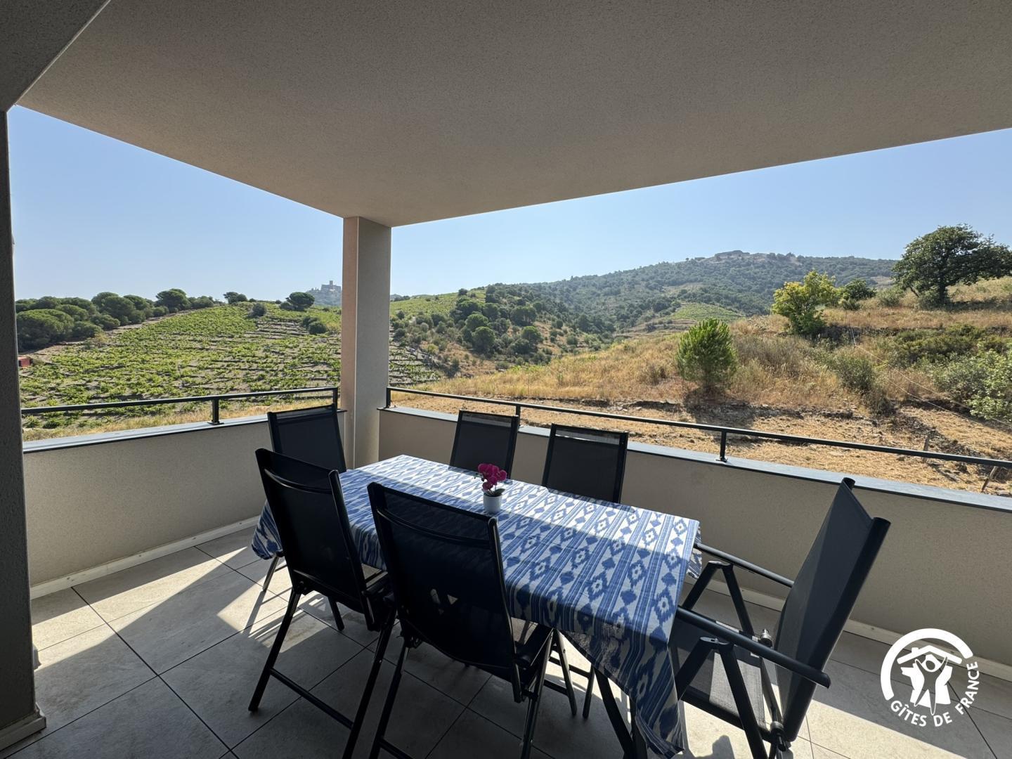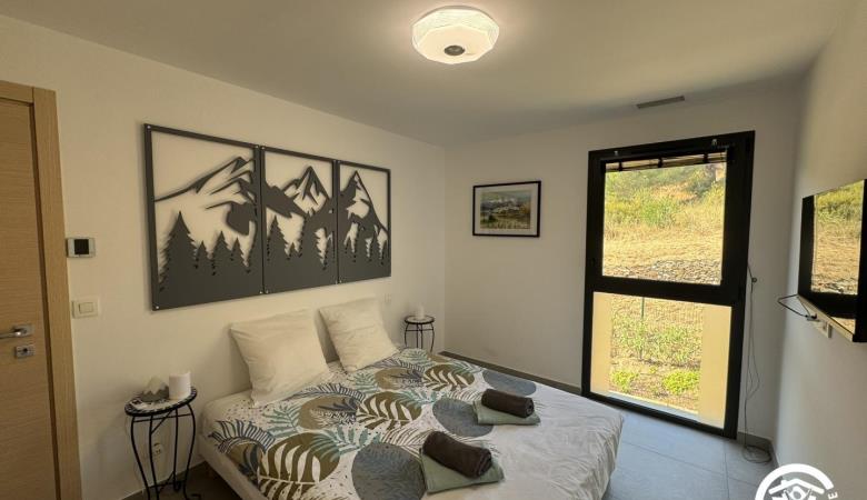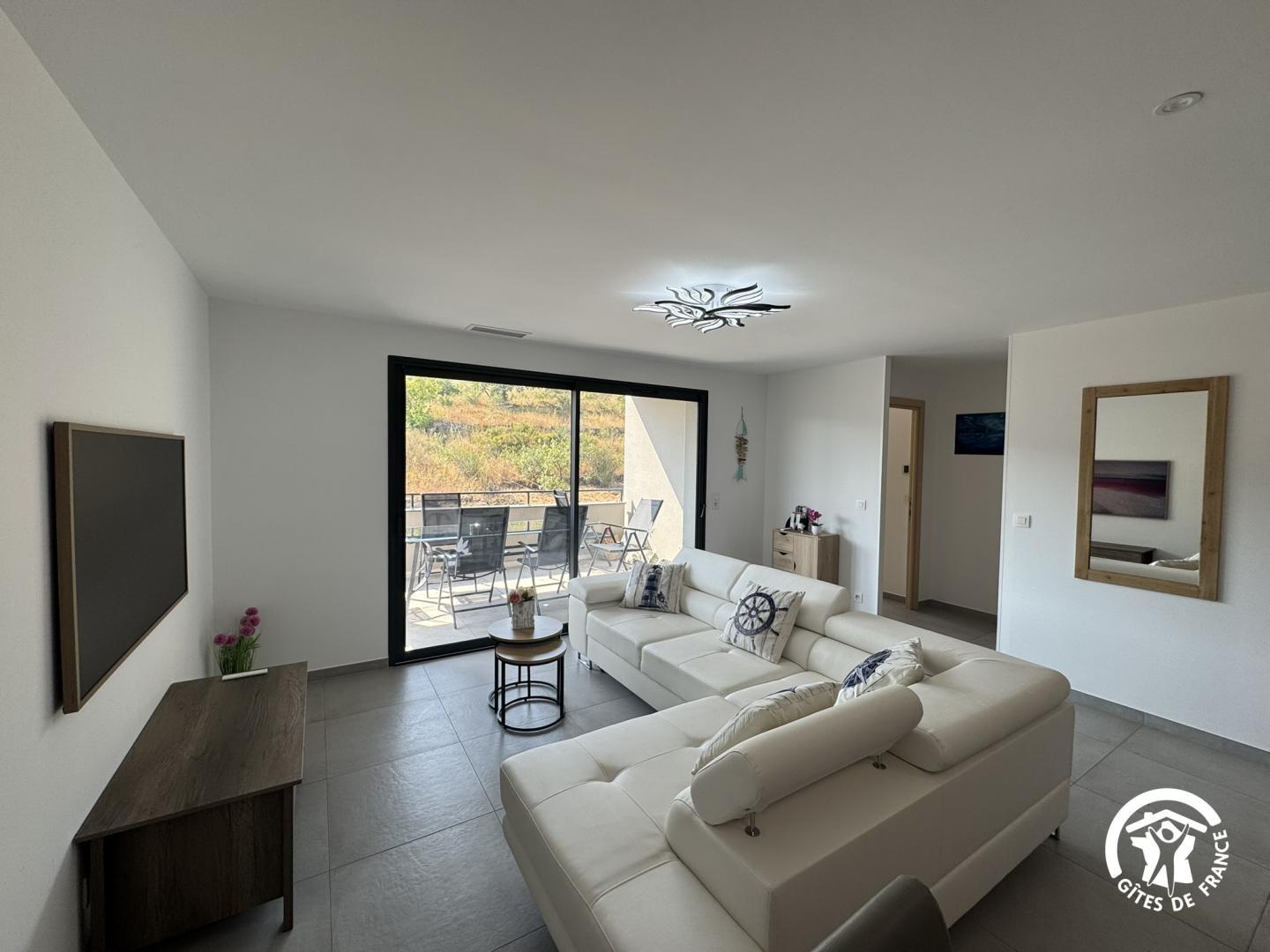 Aquest apartament nou, també classificat amb 4 estrelles en lloguer turístic, es troba al primer pis d'un habitatge amb ascensor, en un lloc tranquil amb vistes espectaculars al mar, vinyes, muntanyes i forts.