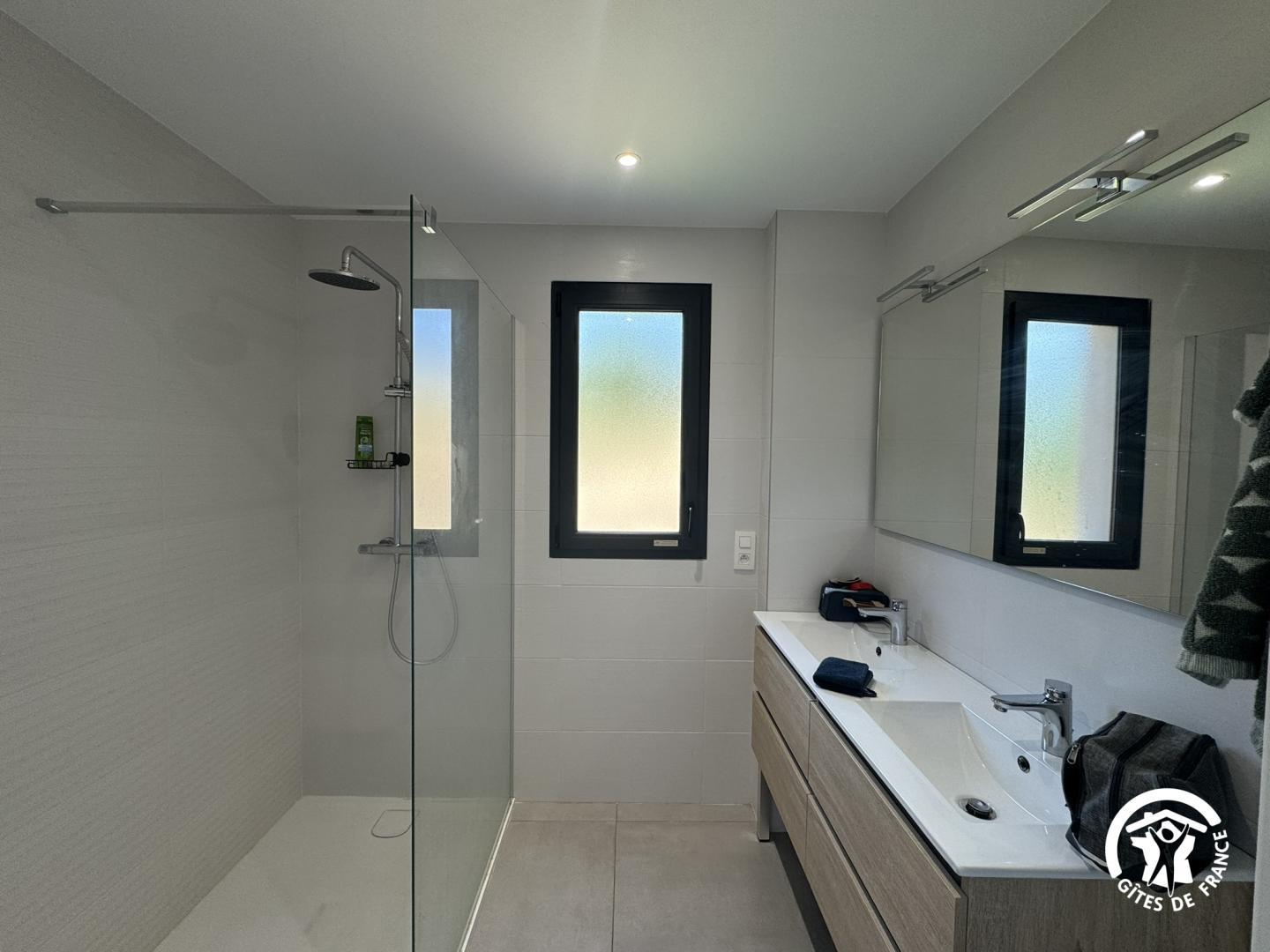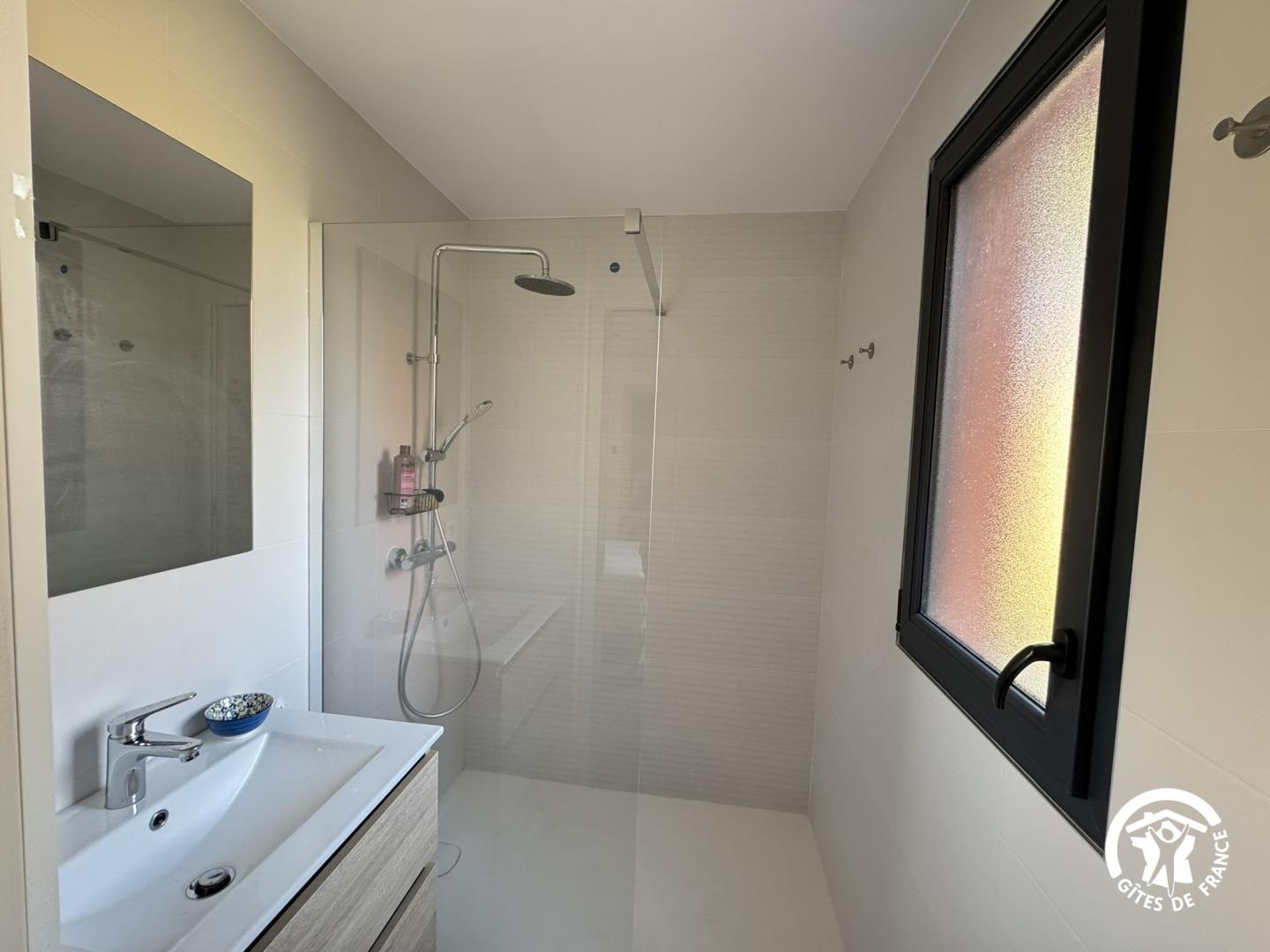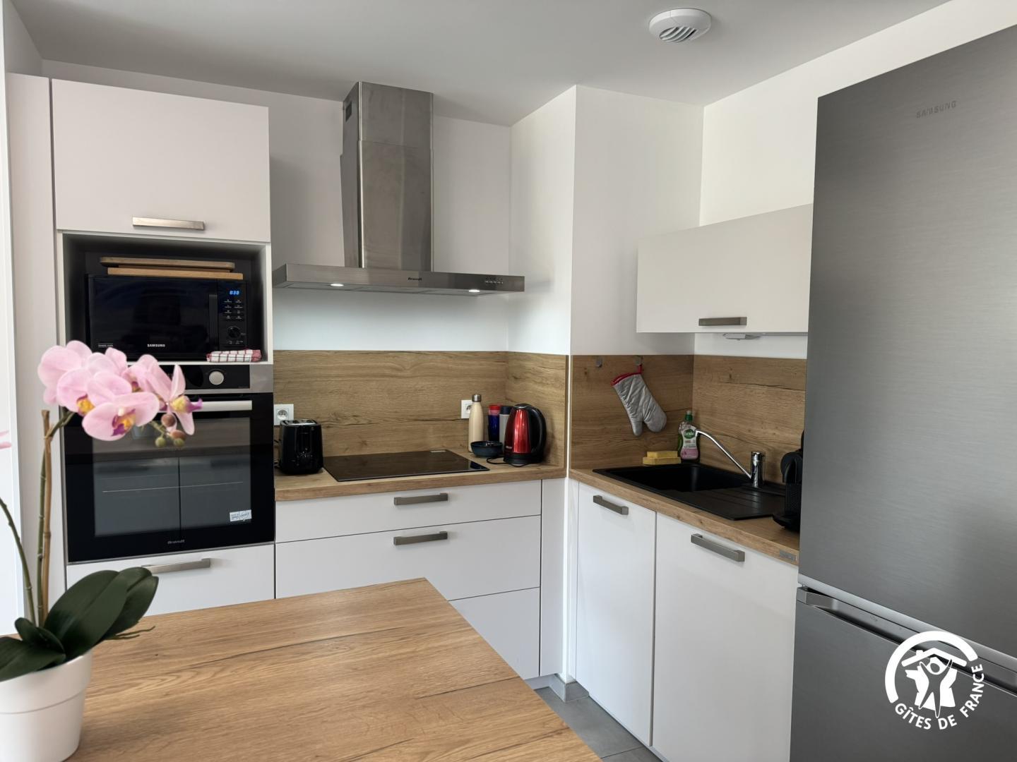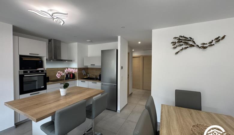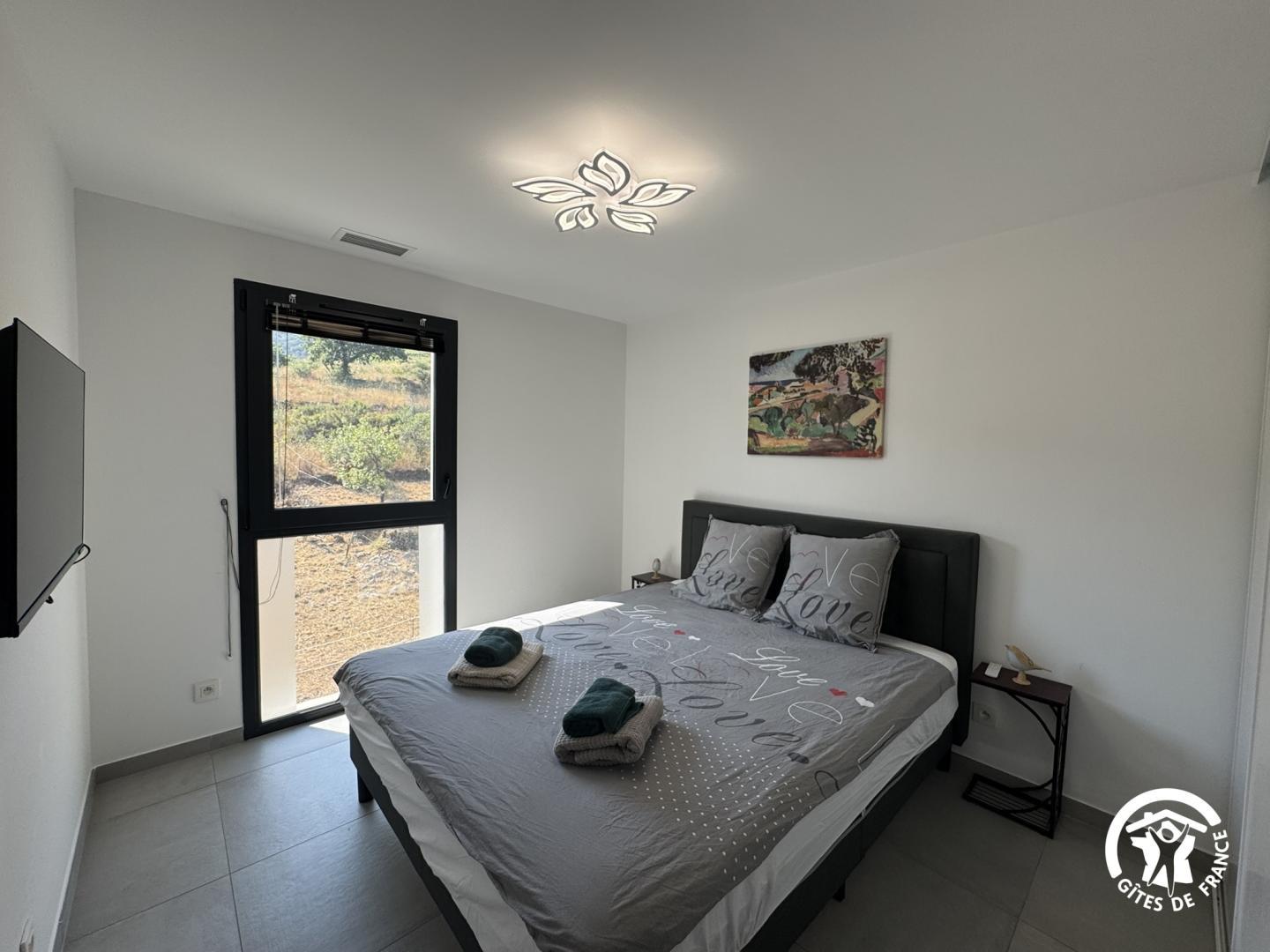 Aquest apartament nou, també classificat amb 4 estrelles en lloguer turístic, es troba al primer pis d'un habitatge amb ascensor, en un lloc tranquil amb vistes espectaculars al mar, vinyes, muntanyes i forts.