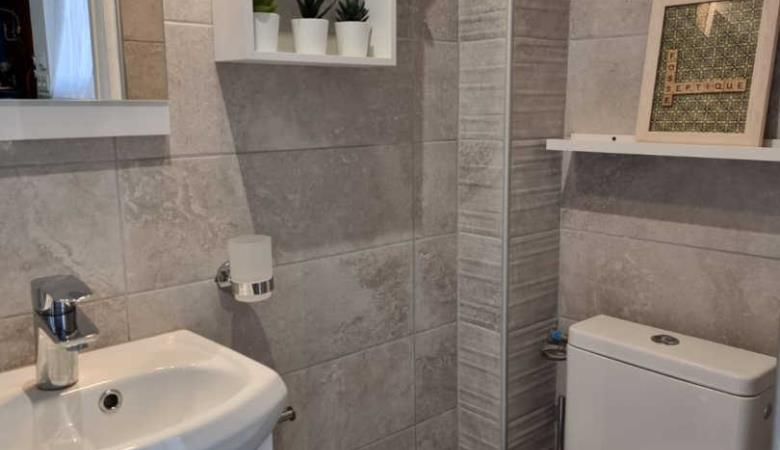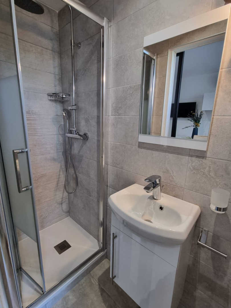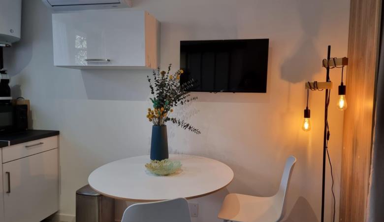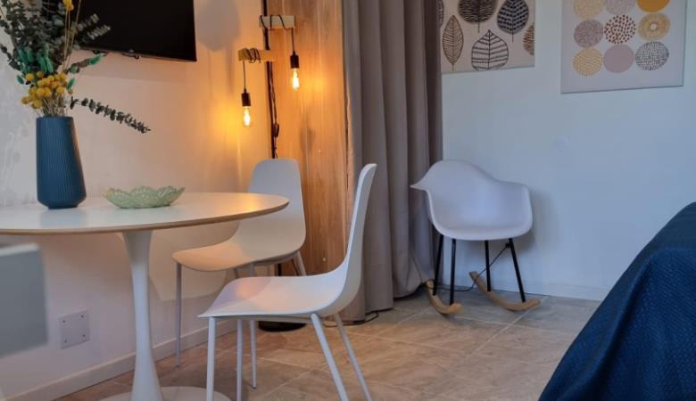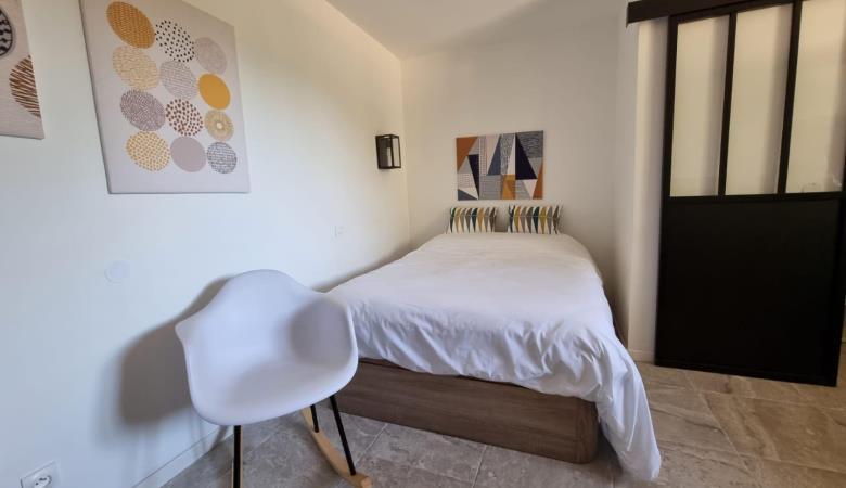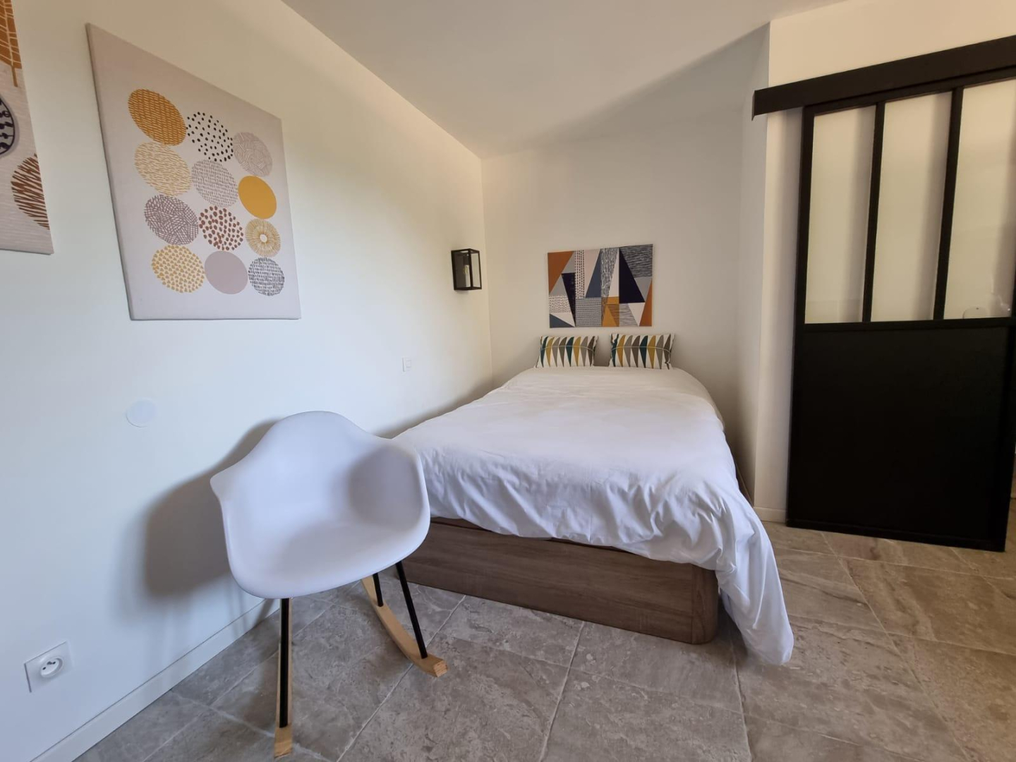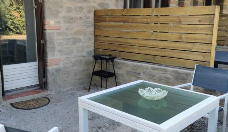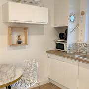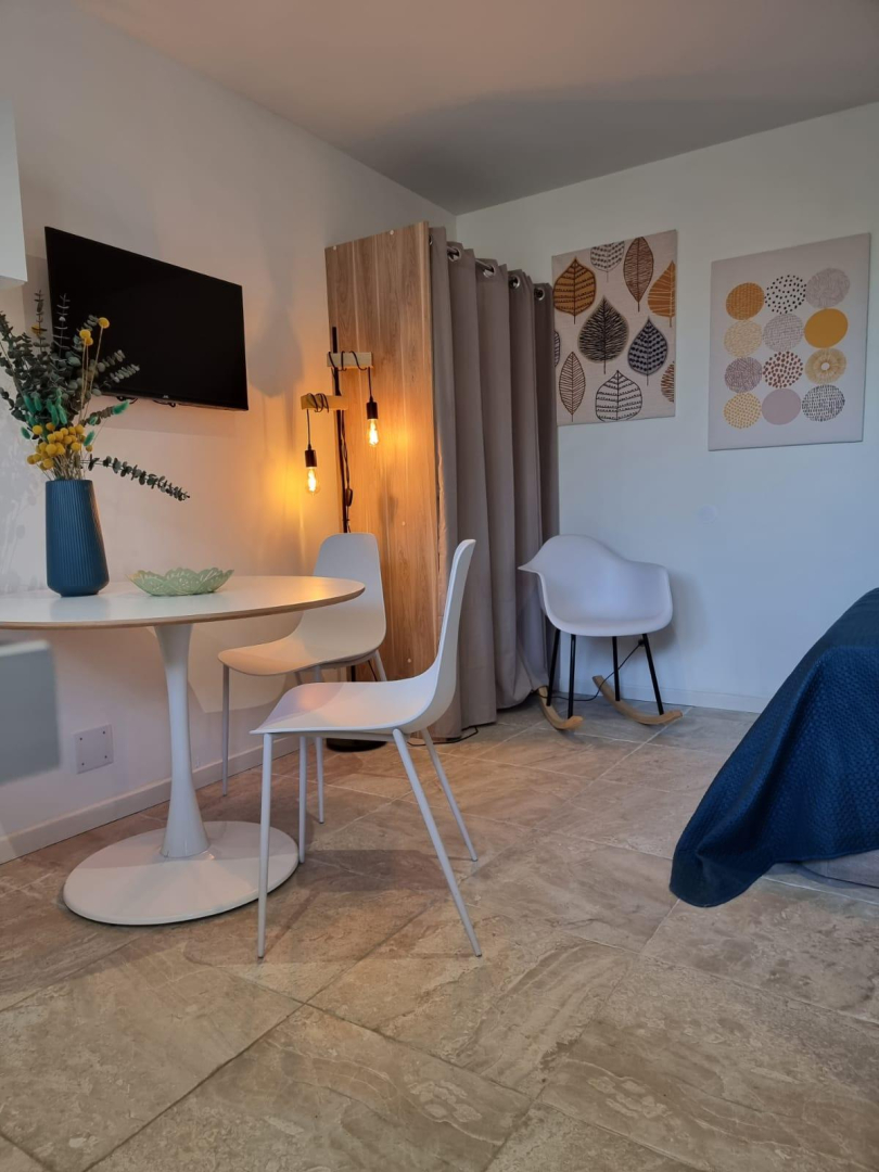 A la planta baixa: Aquest bonic estudi, equipat amb una cuina amb plaques d'inducció, sense forn, amb zona d'estar (1 llit de 140 cm), un bany (wc), s'obre a la terrassa de 18 m².