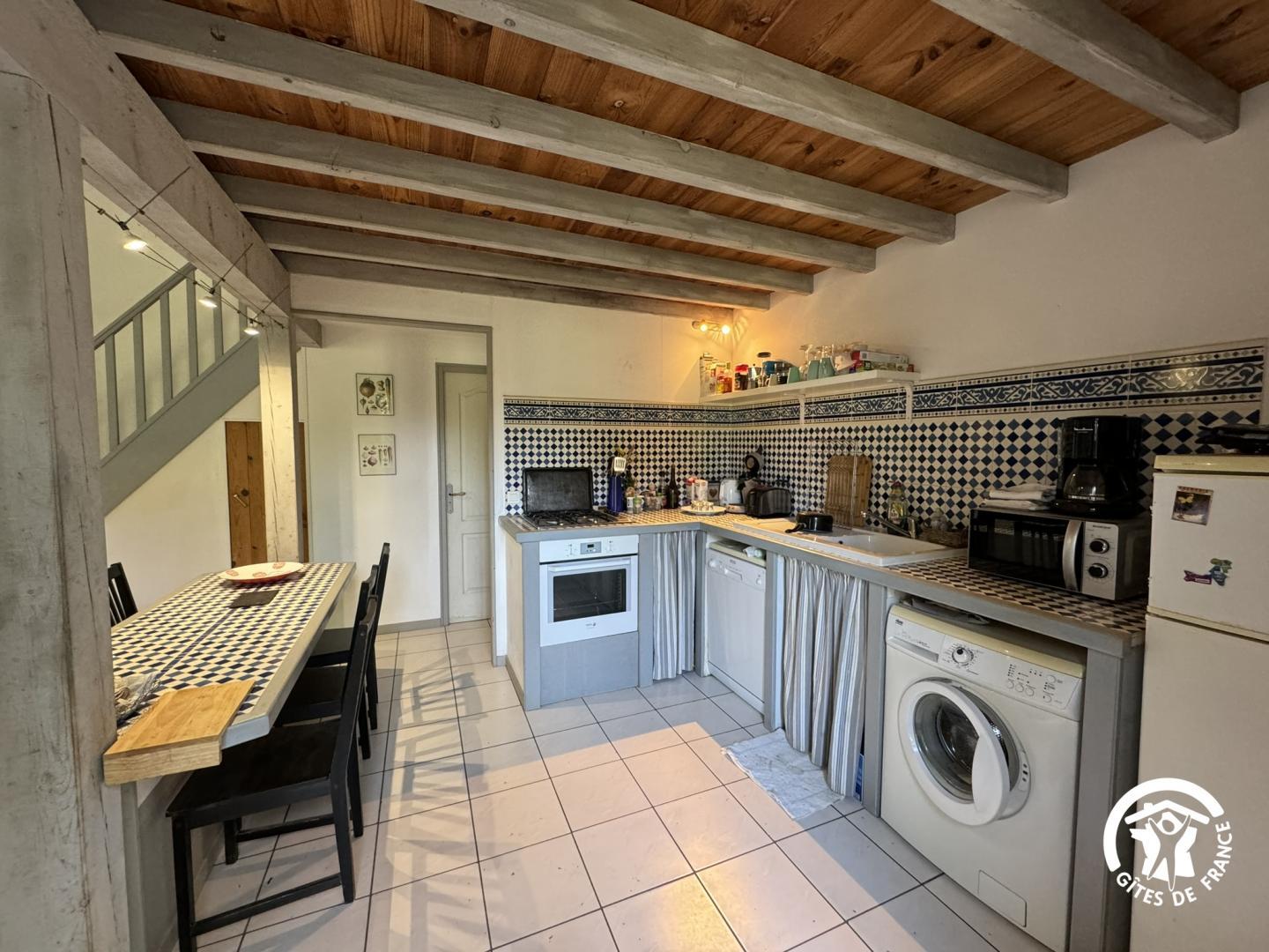 - Roca de cuina: 4 plaques de gas, fornuça, microones, nevera, part de congelador, cafetera Senseo, cafetera de filtre, bollidor i torrador