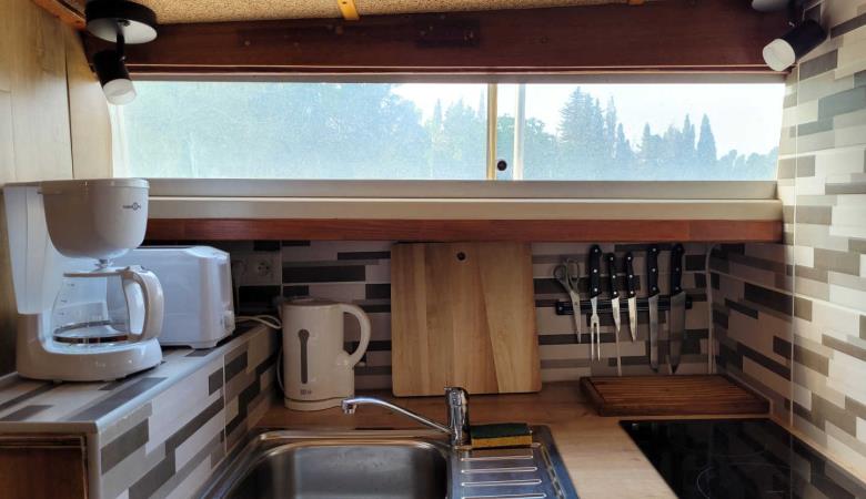 A l'entorn, exploreu els tresors de la regió: les platges assolellades de Canet-Plage, el caràcter pintoresc de Collioure o les històriques carrers del centre de Perpinyà. Per als amants de la cultura, el Palau dels Reis de Mallorca o el Castillet són visites imprescindibles. I per als amants de la natura, una escapada als Pirineus o un dia als cellers locals us captivaran. No gaire lluny, podeu anar al Palau de les Exposicions, o bé a l'estació o a l'aeroport. Gaudeixi de la piscina no escalfada de sobretaula (8,57 x 4,57 x 1,45), compartida, accessible de mitjans de maig a mitjans d'octubre amb horaris adaptats de 10h a 20h. Disponible també un gran jardí comú i una terrassa privada per a moments de convivència inoblidables. Aquest insòlit vaixell, us acollirà a 2 persones, amb un nen (llit de cuna). Està equipat amb: una cuina d'angle equipada amb microones i un espai per a rentar-se les mans.