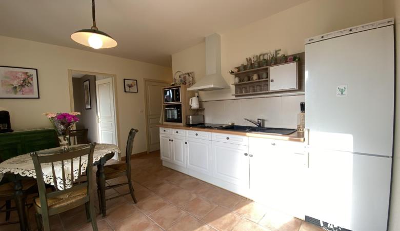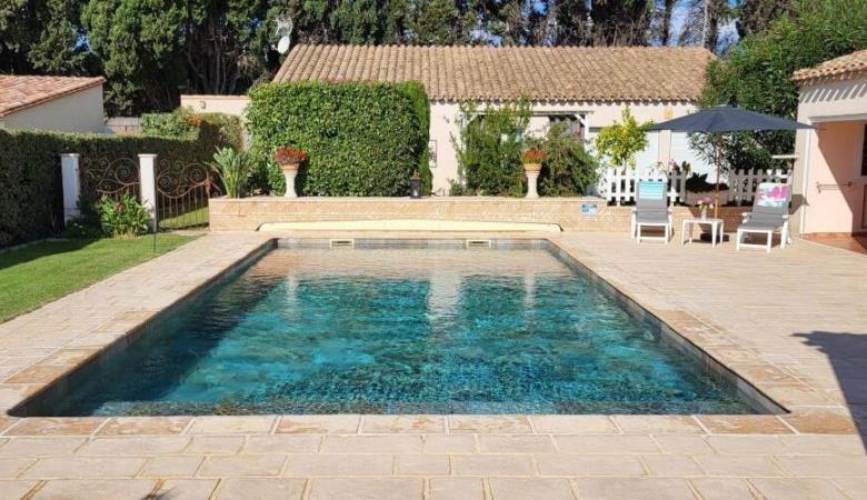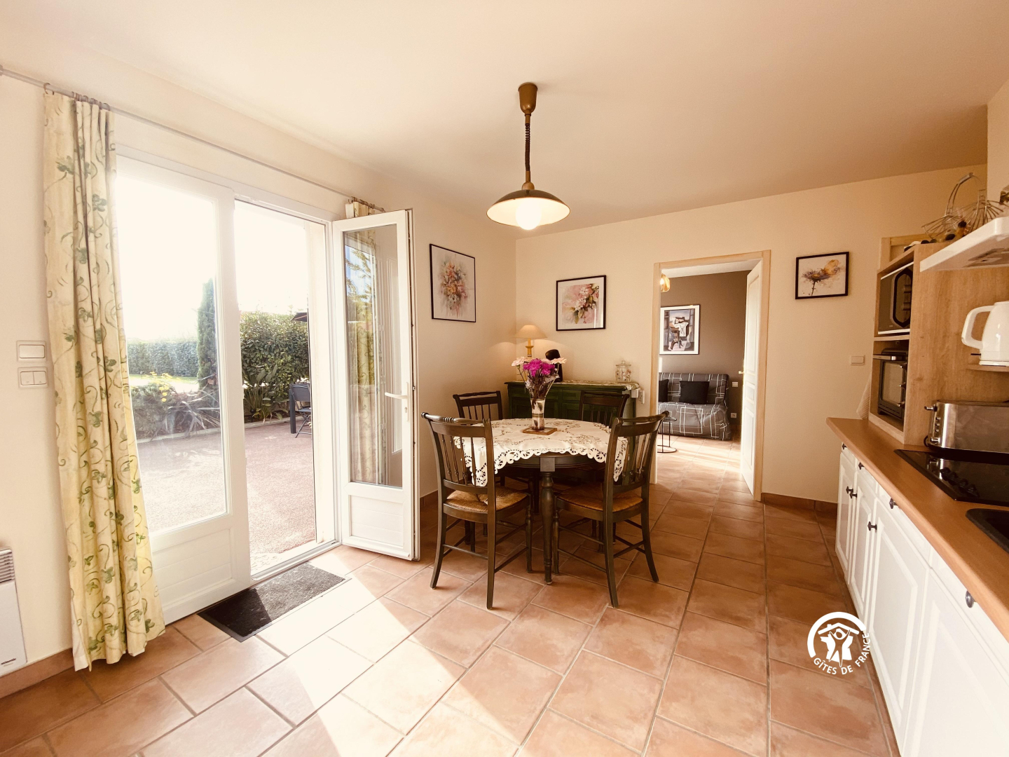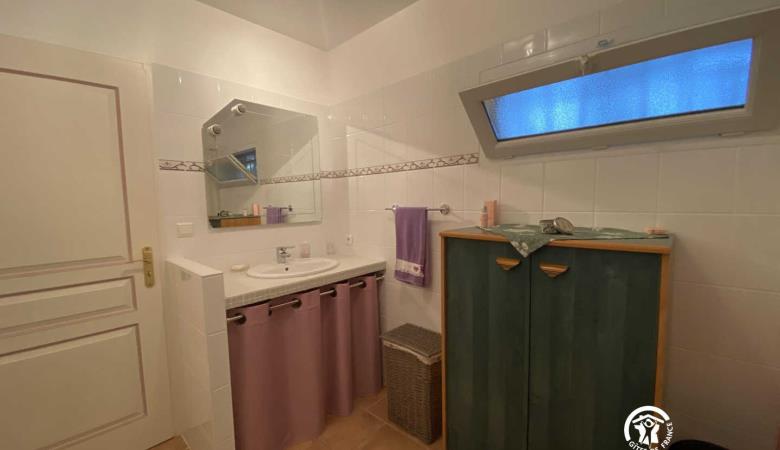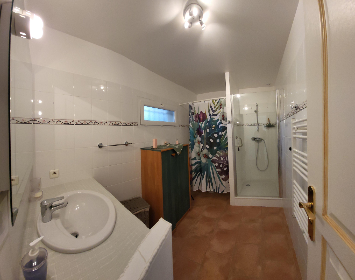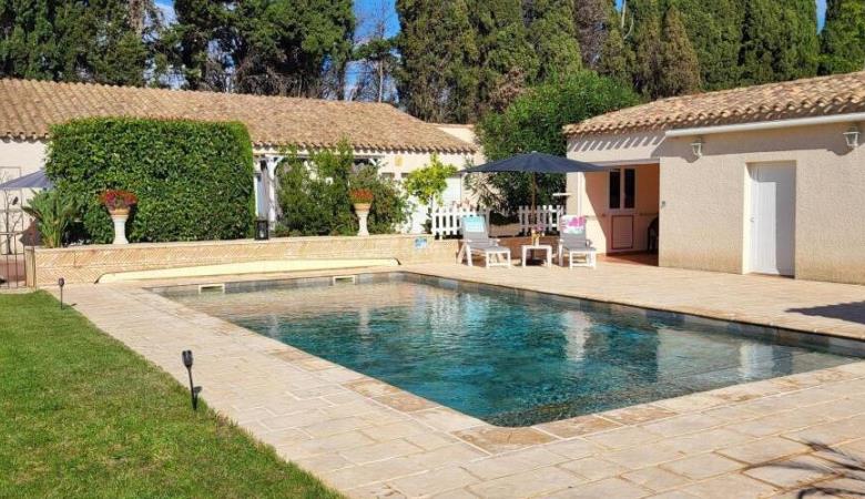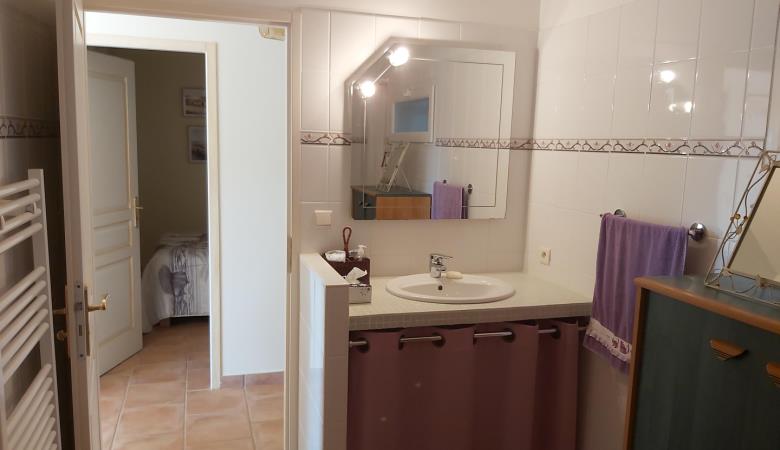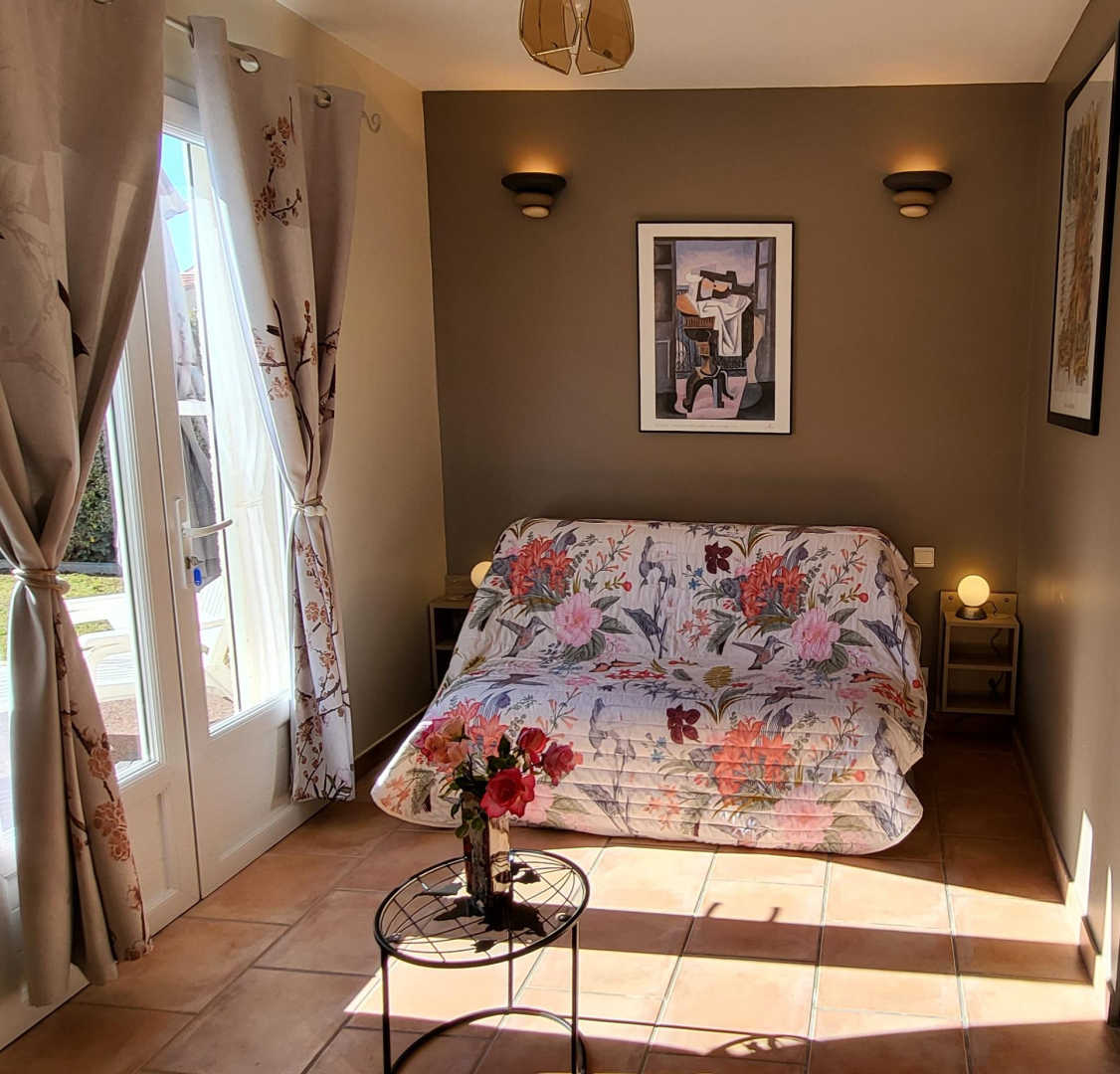La cuina amb menjador s'obre a la terrassa privada de 70 m² (jardí d'hivernacle, planxa), amb vista a la piscina comuna, a la qual s'accedeix per una porteta. Un saló equipat amb un sofà i una televisió, també dona a la terrassa. Una habitació (1 llit per a 2 persones, connexions elèctriques USB i USB-C), un bany (wc). Un pool house us està dedicat.