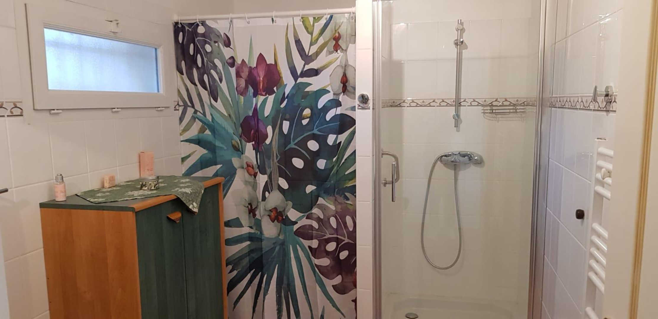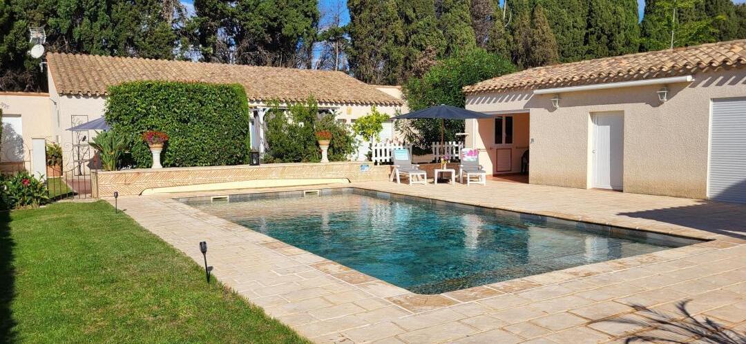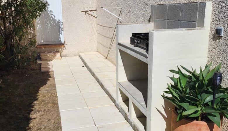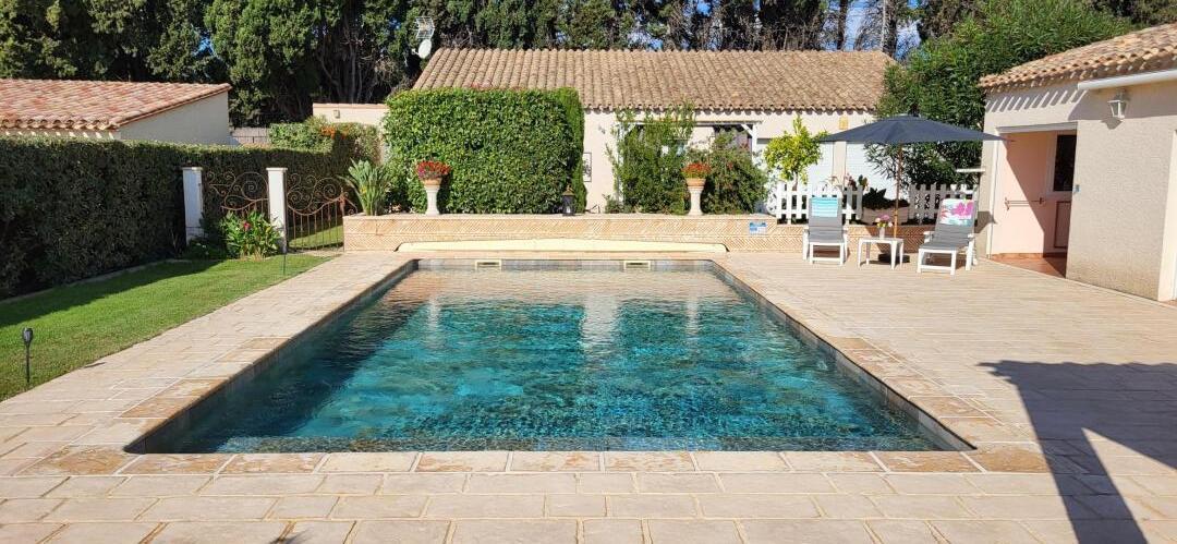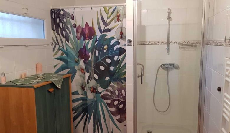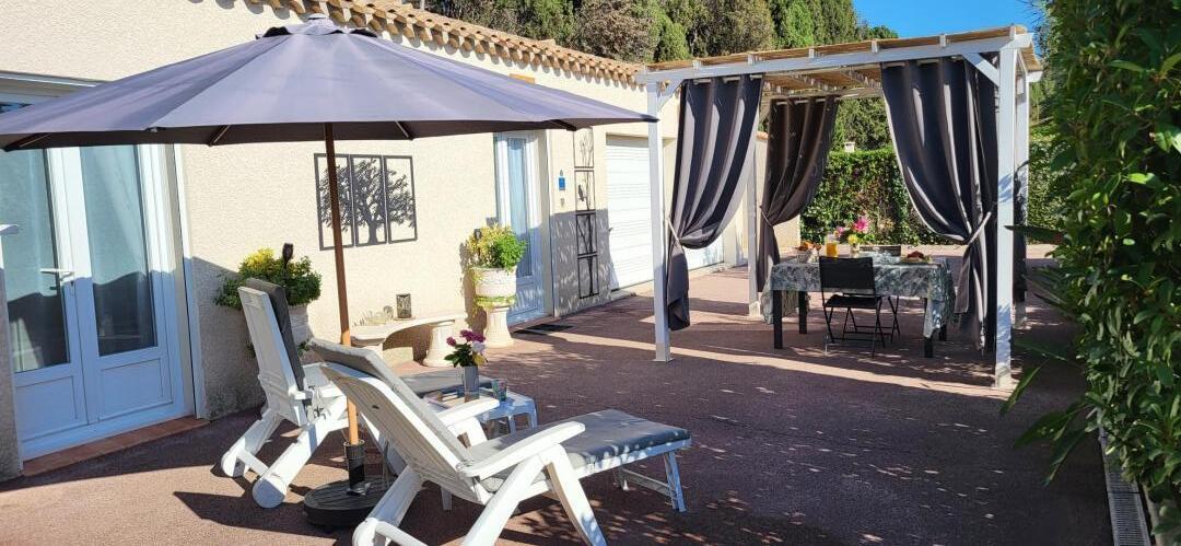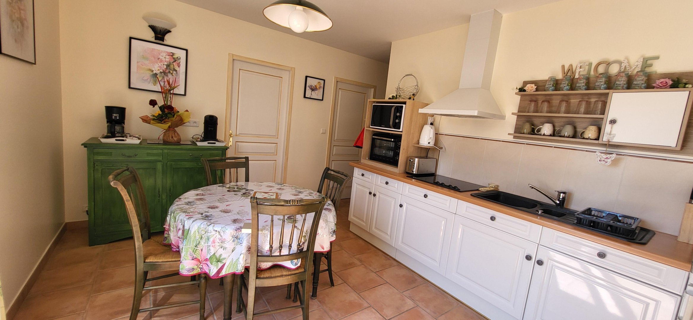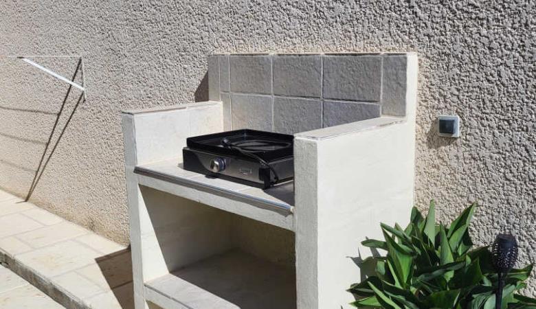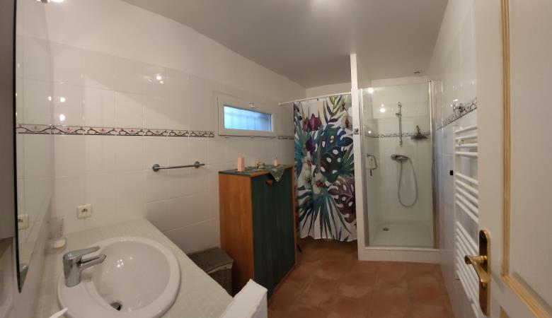 La cuina amb menjador s'obre a la terrassa privada de 70 m² (jardí d'hivernacle, planxa), amb vista a la piscina comuna, a la qual s'accedeix per una porteta. Un saló equipat amb un sofà i una televisió, també dona a la terrassa. Una habitació (1 llit per a 2 persones, connexions elèctriques USB i USB-C), un bany (wc). Un pool house us està dedicat.