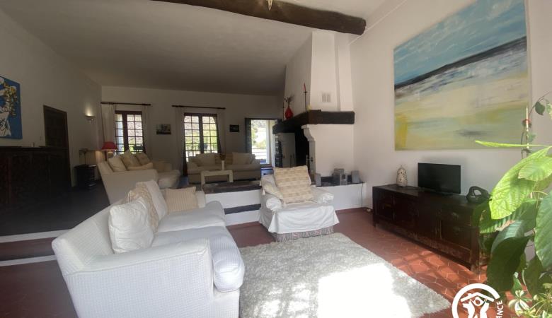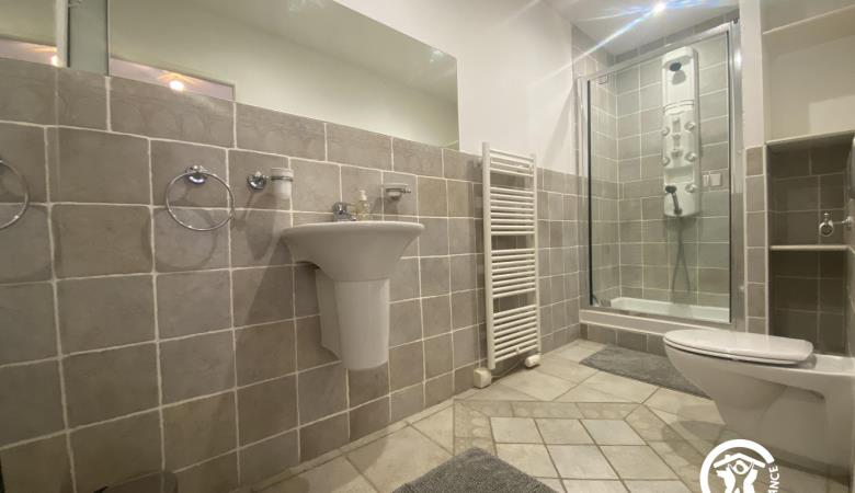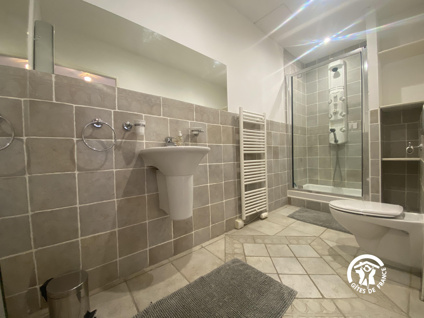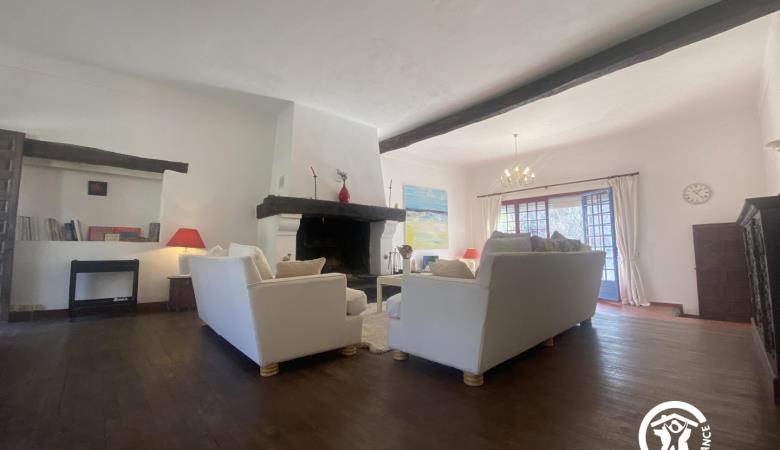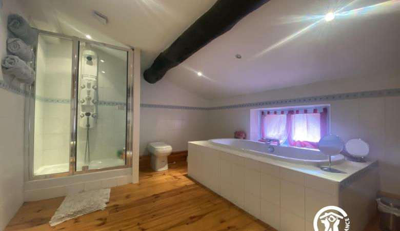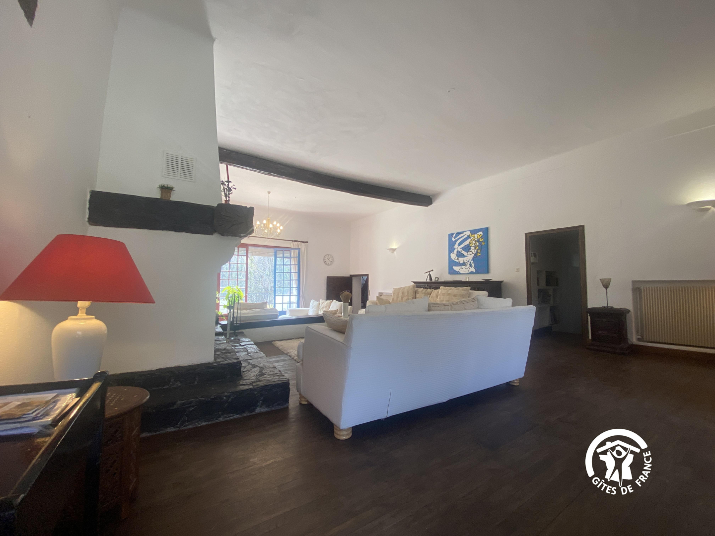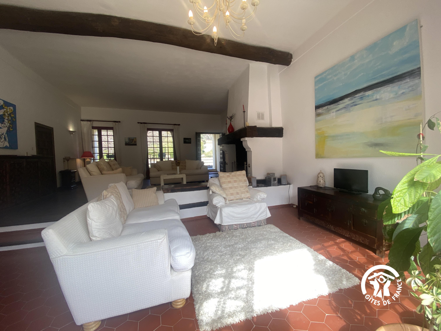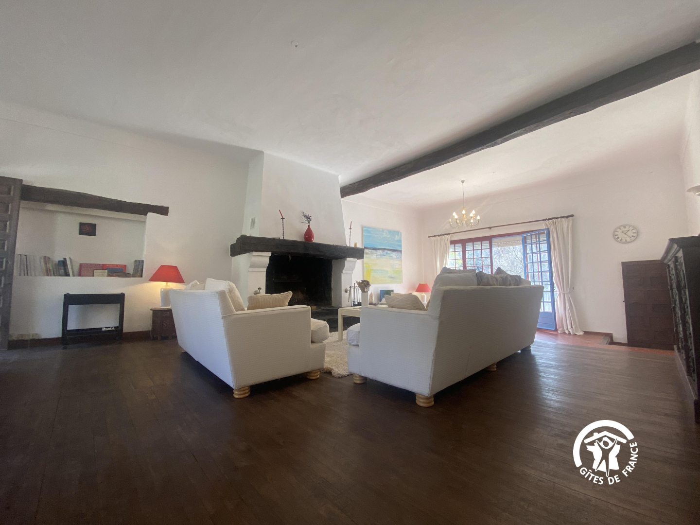 Al primer pis: la gran habitació de dia amb xemeneia i televisió dona a una terrassa de 50 m² amb una bonica vista de la natura. Disponible per a tu hi ha una cuina.