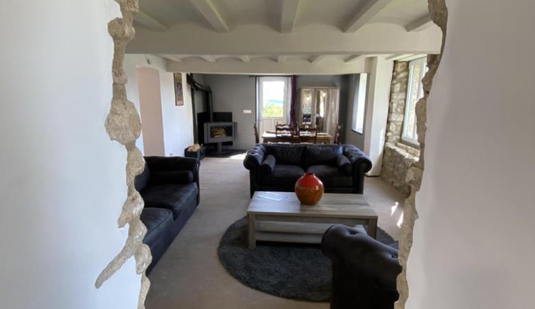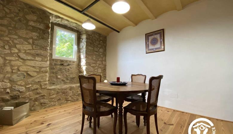 L'allotjament està situat en una part independent d'aquesta gran masia i s'hi accedeix per unes escales exteriors d'una desena d'escales.