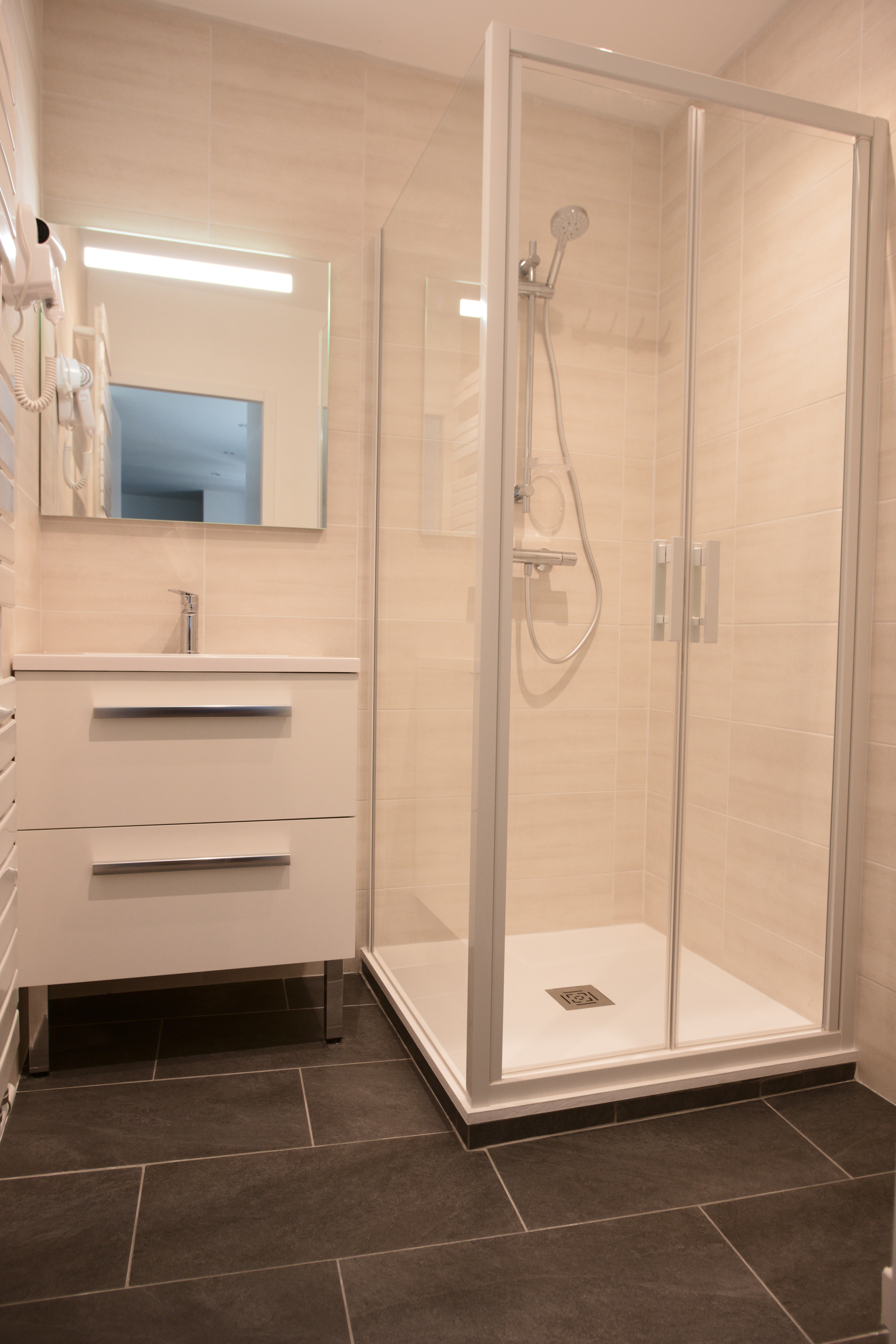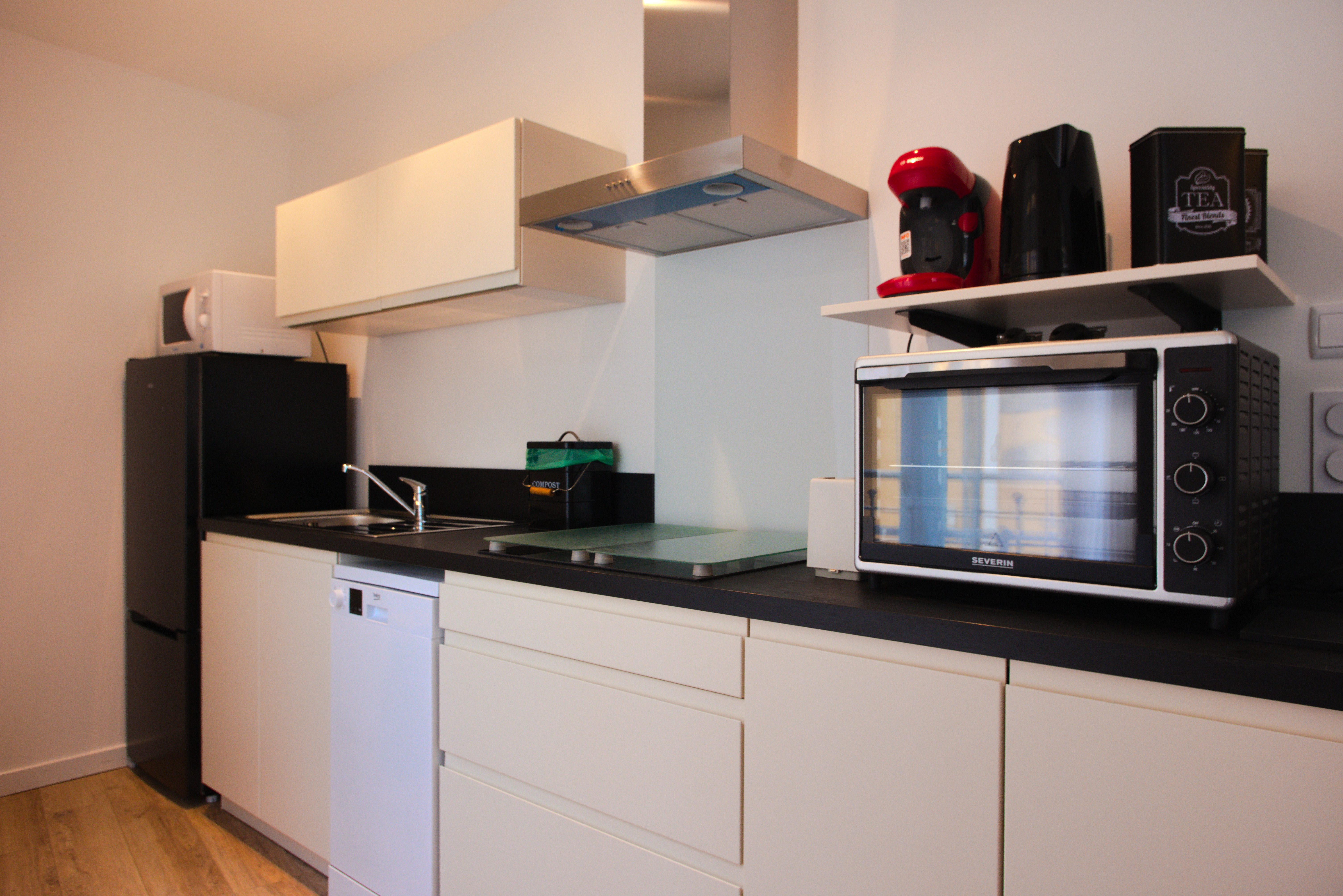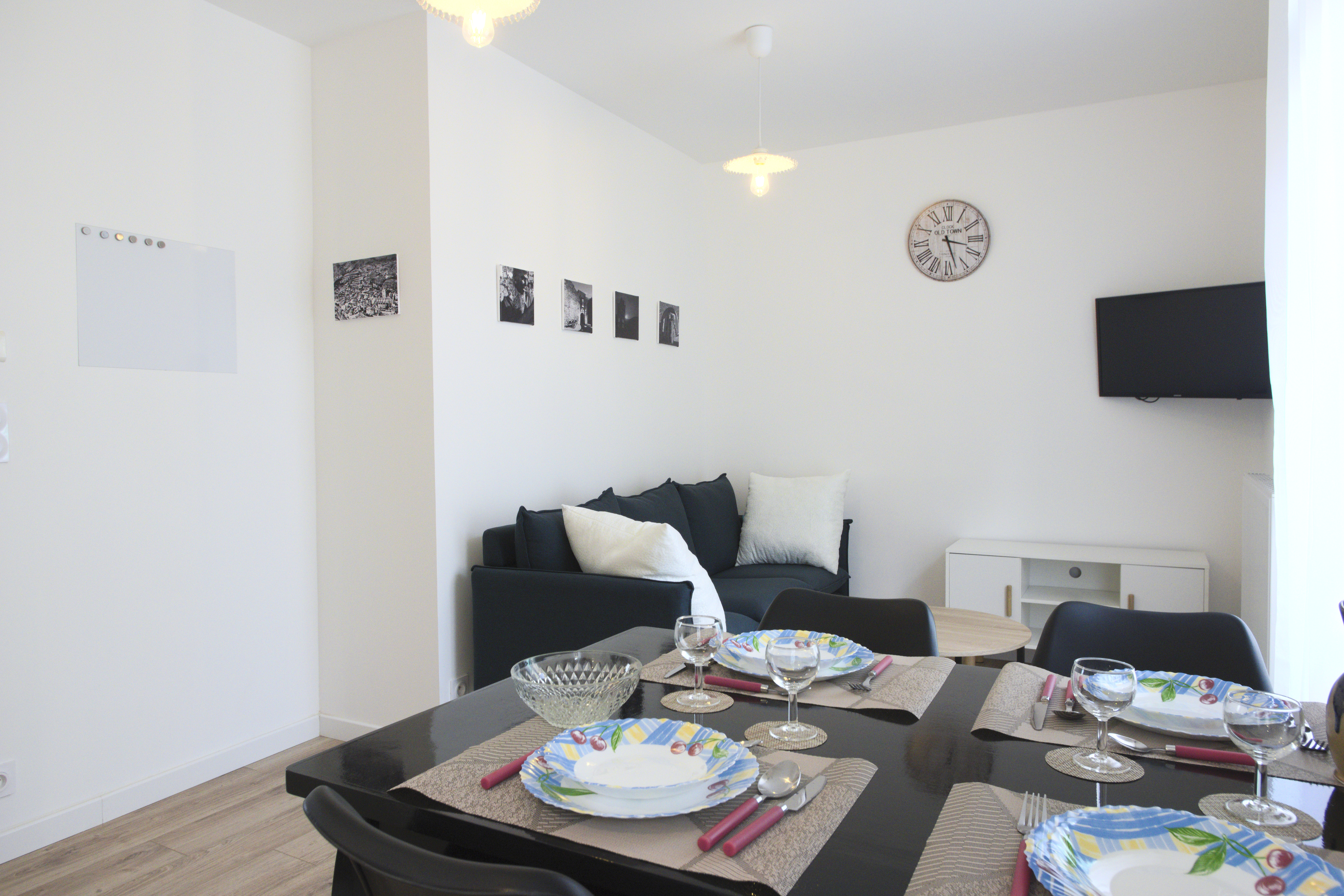 A l'entrada de l'apartament, us acolliran en un saló il·luminat i acollidor. Les grans finestres permeten que la llum natural inundi l'espai, creant una atmosfera càlida. La cuina, funcional i ben equipada, ofereix tot el necessari per a la preparació de menjars deliciosos. 1er pis. Una habitació còmoda (un llit de 160x200) que és un refugi de pau que ofereix una intimitat tranquil·la. El bany modern està equipat amb instal·lacions confortables, garantint el vostre benestar diari.