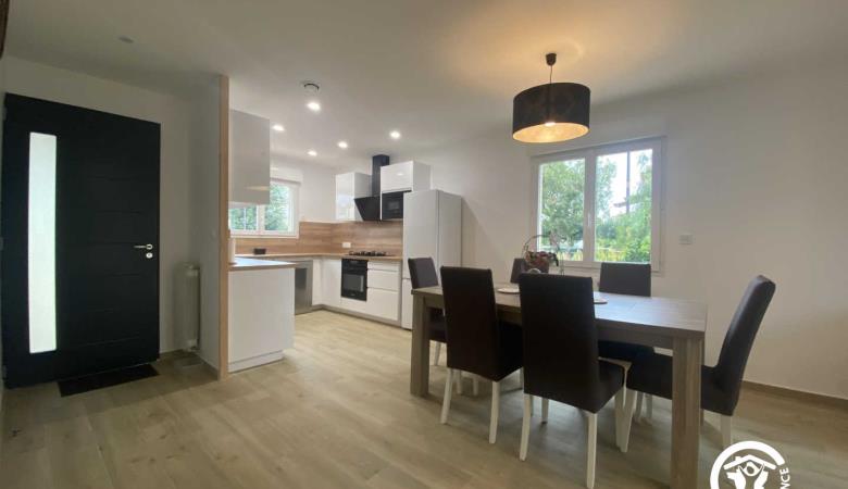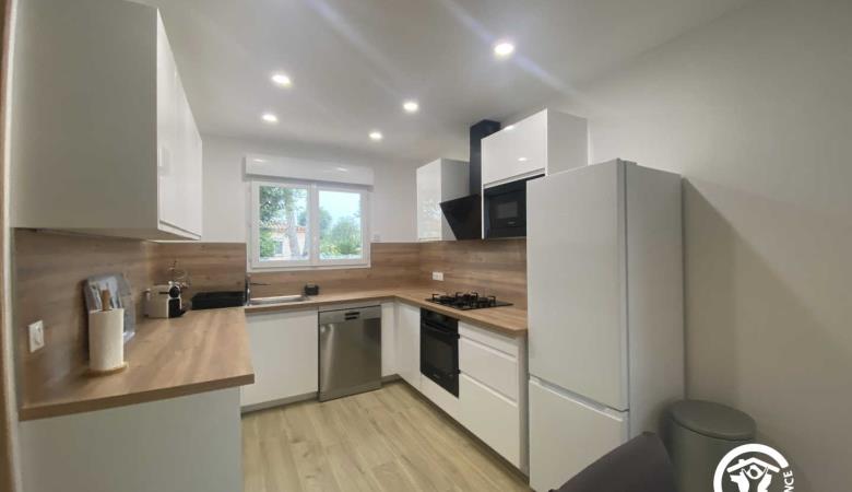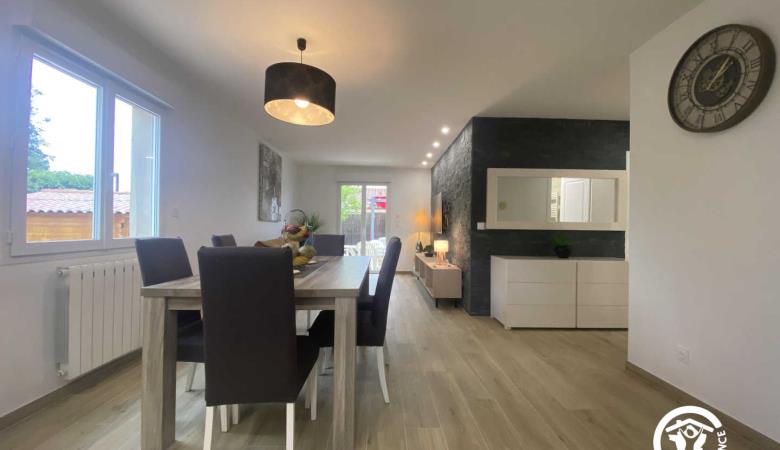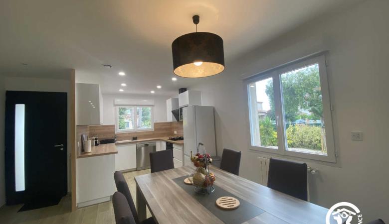 cuina totalment equipada, amb menjador i saló que dona a una terrassa a l'interior.