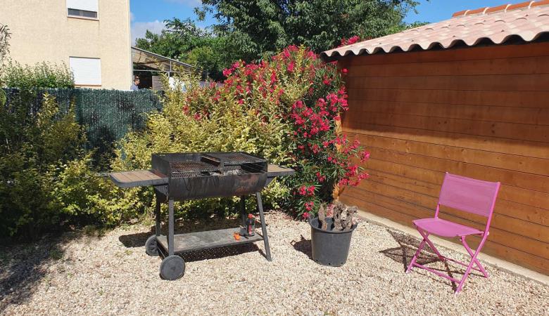 L'allotjament disposa d'un jardí tancat, arbrat i florit de 300 m², equipat amb un saló de jardí, un barbacoa i un solàrium, perfectes per a moments de relaxació a l'aire lliure.